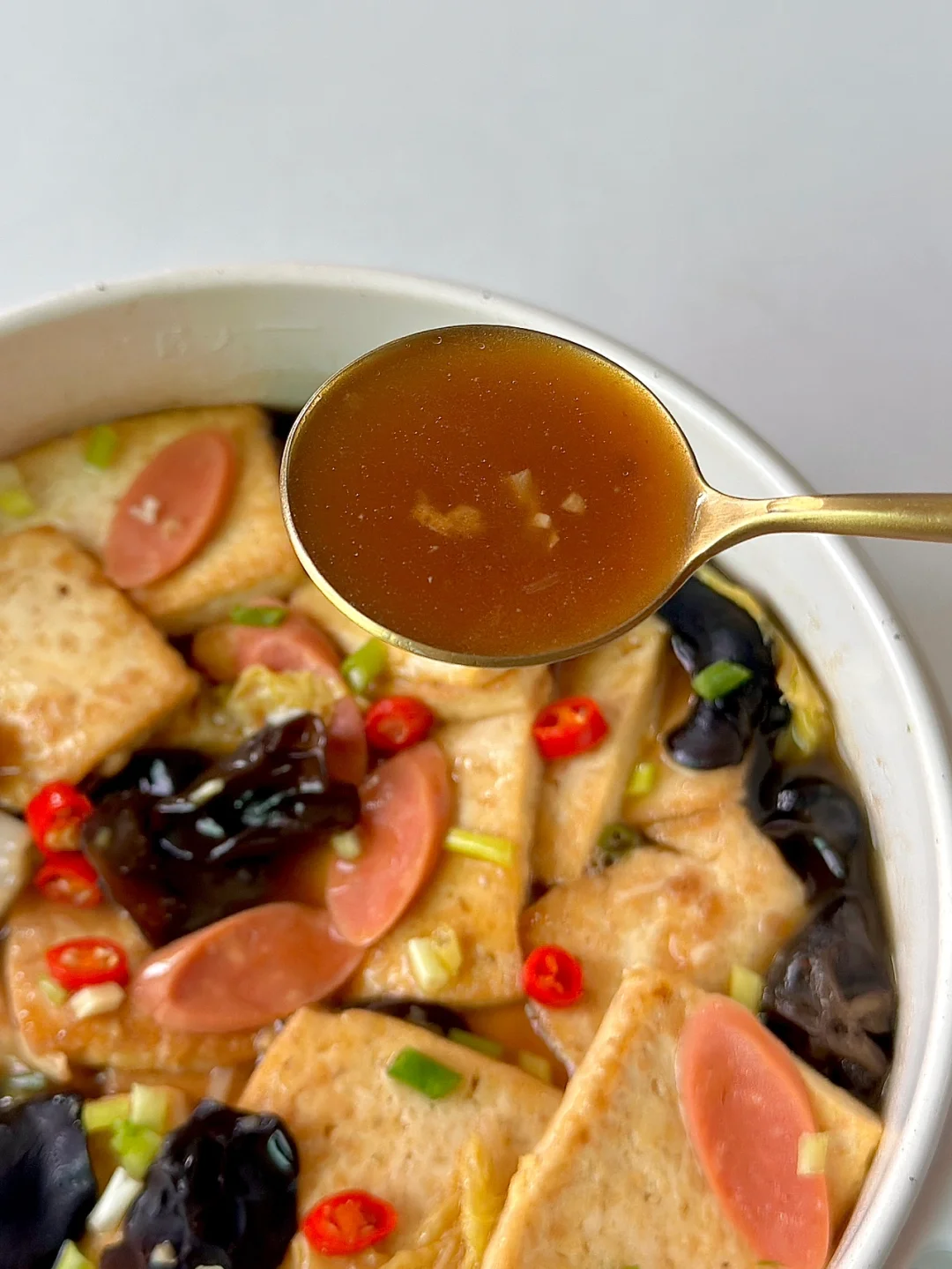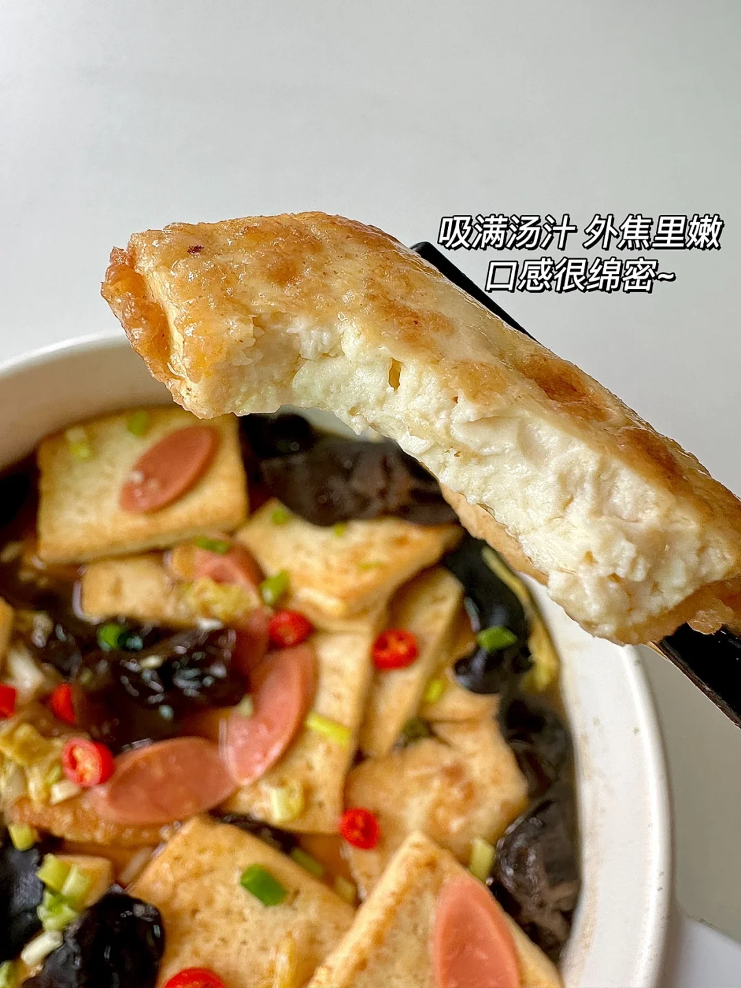 吸满汤汁的豆腐软嫩Q弹,鲜甜又美味,低脂低卡高蛋白,干完一大盘饱腹感拉满~