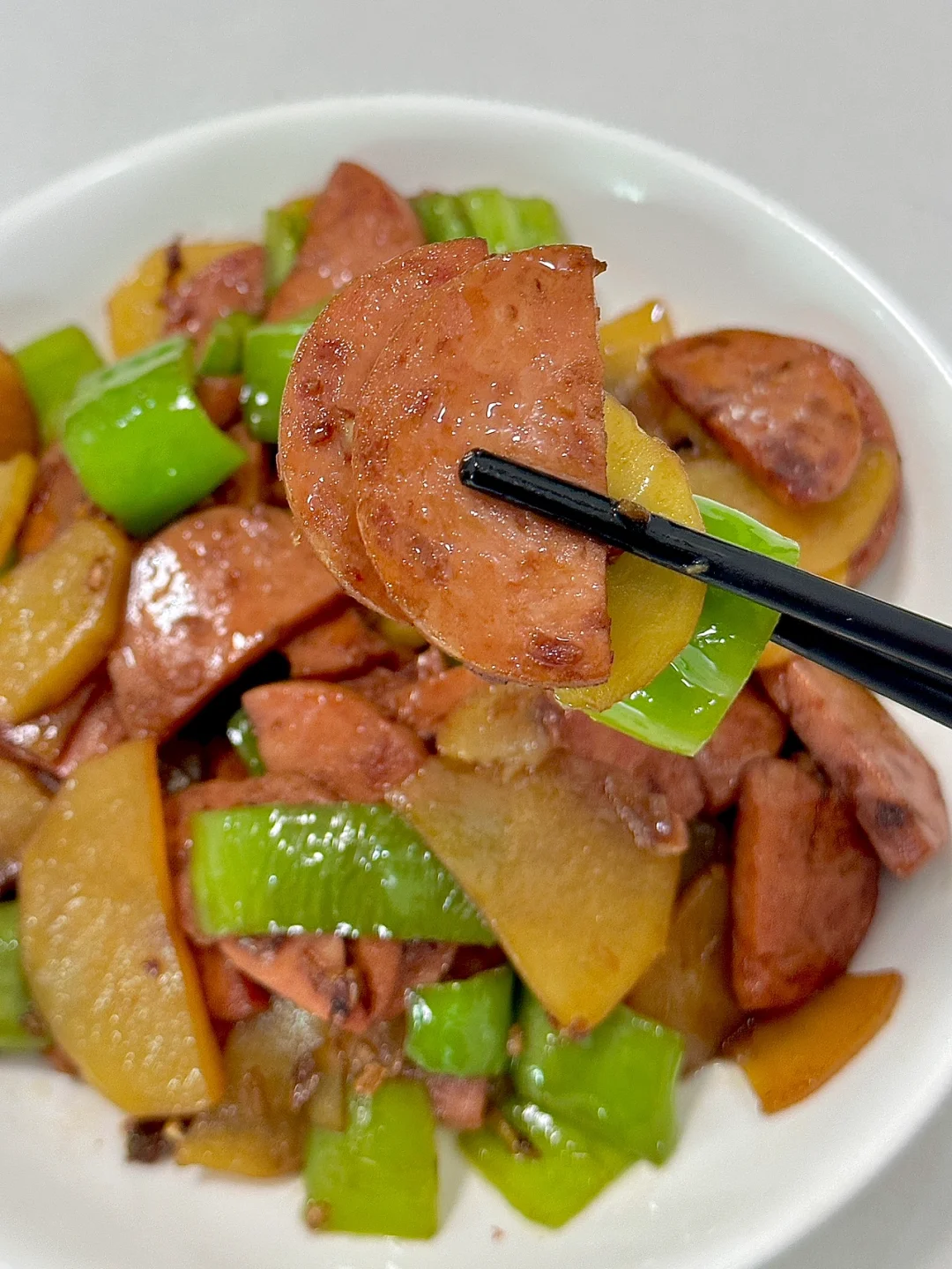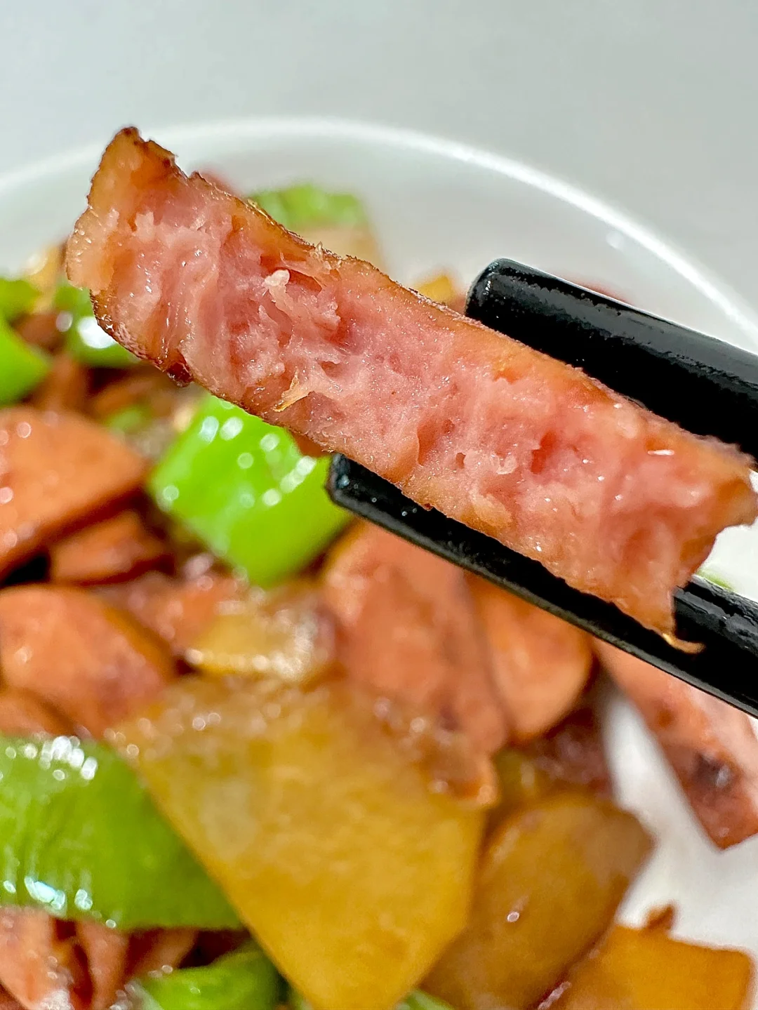 青椒不管炒都好下饭!最近吃了好几回青椒火腿土豆片!上桌就秒光~猪队友可以连干三碗米饭呢!做法简单,分享给大家!😘