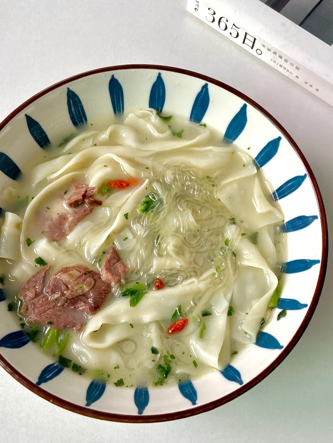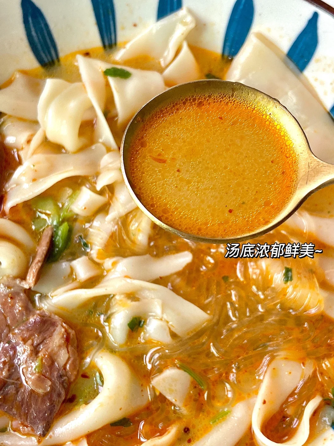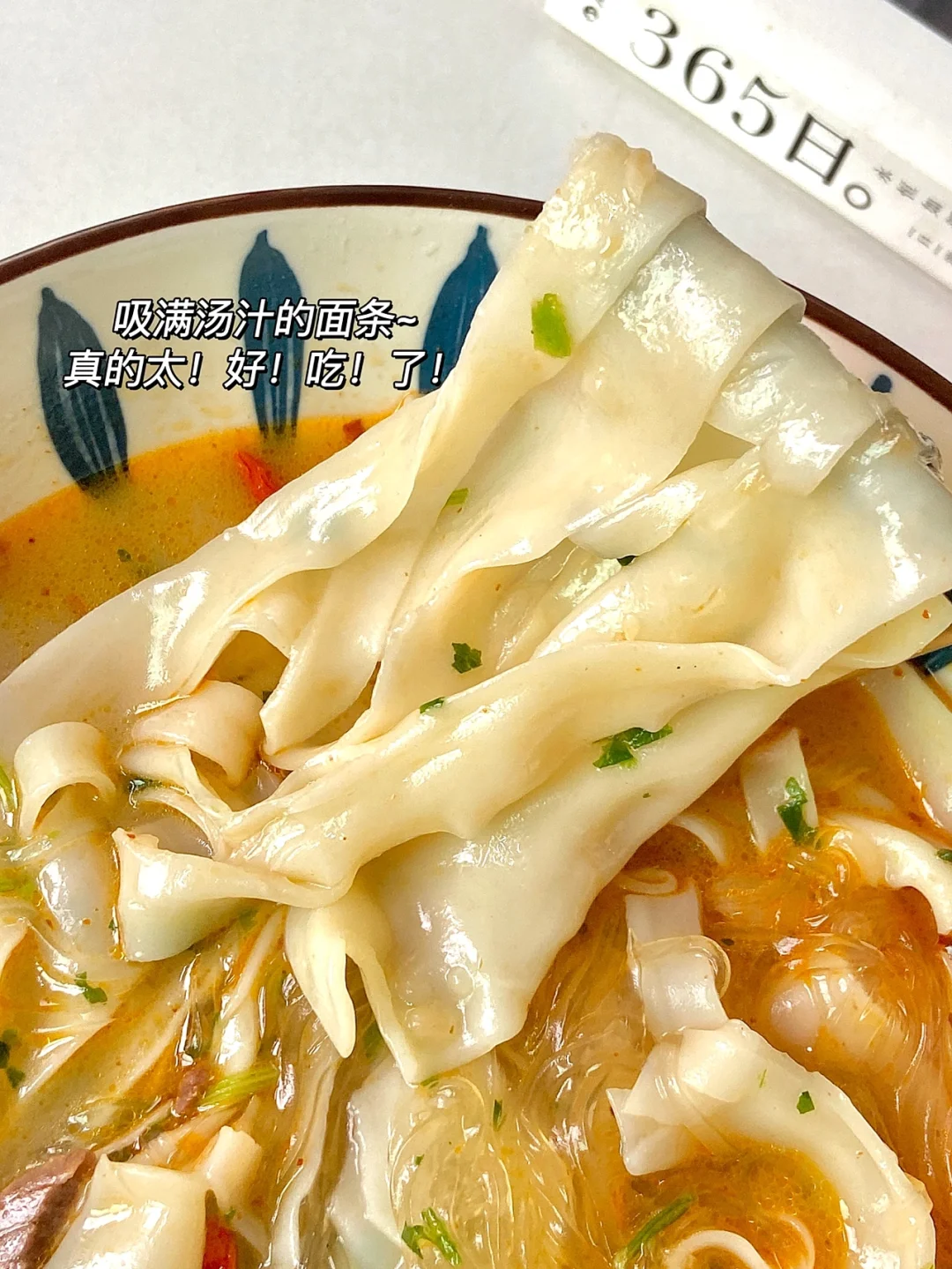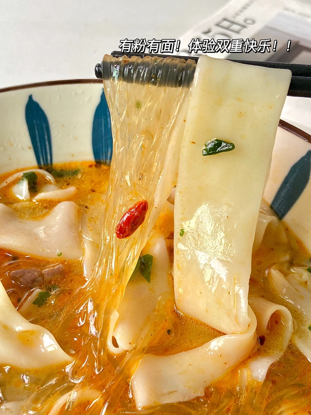 自从上次吃了河南室友推荐的老方城羊肉烩面!真的香哭了!吃了还想吃!于是赶紧又入手了牛肉烩面!🥩 . 还是十分钟就出锅!还是宽宽的劲道爽滑的面条!但这个多了粉条!一下子拥有了粉+面的双重快乐!配料包里自带大块纯牛肉、蔬菜包、牛油包和牛油辣椒! . 牛骨➕牛油的汤头!浓郁鲜香!吸满牛油辣椒汤汁的宽面粉条口感好丰富!鲜到掉毛!不仅面好吃汤也好喝!一口面一口汤真的好解馋~ . 宅家实现烩面自由!大块的牛肉吃得又过瘾!而且又方便!上班族、宿舍党和宵夜党们可以囤点儿!比外卖健康好吃多了~
