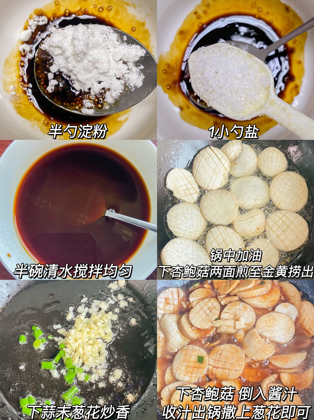 4️⃣锅中加油下蒜末葱花炒香 加酱汁杏鲍菇 烧粘稠收汁即可出锅