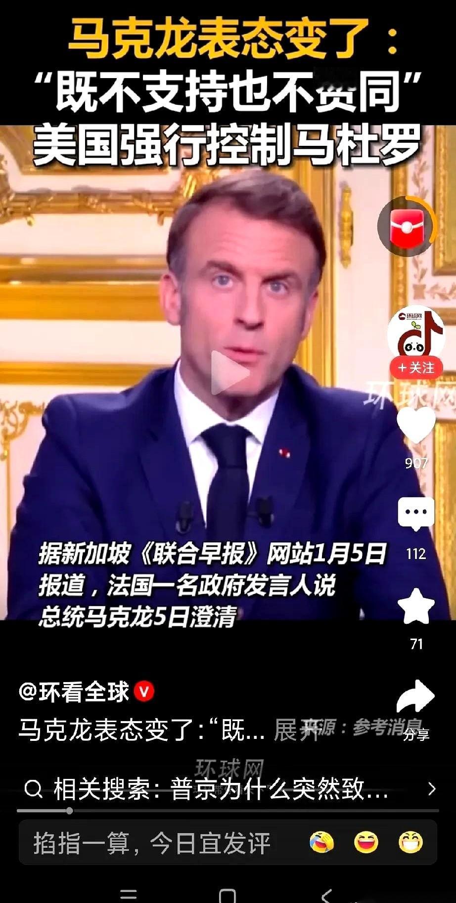 马克龙那个表态,我反复看了几遍。 一边对着大洋彼岸,话筒递到嘴边,每个词都像用尺子量过,生怕一句话说错,桌上的电话就响了。那不是谨慎,那是肌肉记忆里的紧绷。 可镜头一转,话题到了千里之外的冲突,他整个人的气场都不一样了,后背靠上椅背,手指在空中轻轻一挥,那副神情,不像是在讨论一场战争,倒像是在安排自己周末的行程,轻松又果决。 这种反差,看得人后背发凉。 一边是“大哥你说的都对”,另一边是“我第一个上”。把自己的战车擦得锃亮,却只敢朝着没有虎狼的院子猛踩油门。 说白了,这就是典型的“向上社交”,把腰弯给强者,再把挺直的腰杆秀给更弱者。 所以这到底是生存智慧,还是骨子里的欺软怕硬?