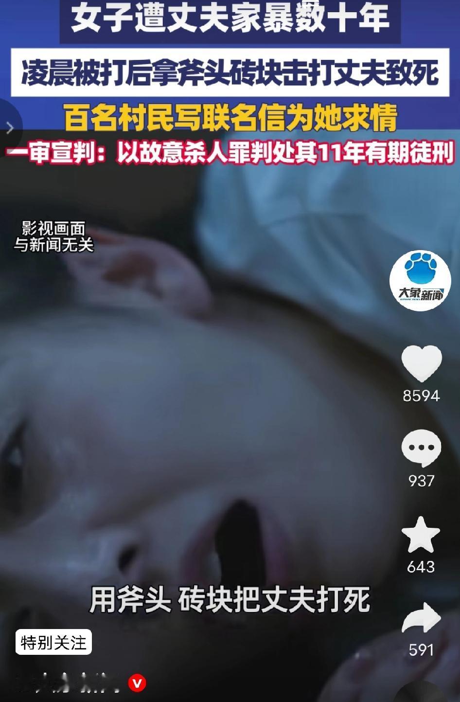 被家暴30年的她,凌晨反抗失手杀夫,百名村民联名求情,最终还是被判了11年!这到底是怎么回事呢? 据大象新闻报道,今年1月初的一个凌晨,哈尔滨的靳燕华,拿着斧头和砖块,失手把她丈夫曹富爽给打死了。 你听着是不是觉得她很狠?可你知道吗,她是被打了整整30年啊! 从刚结婚那天起,她丈夫就酗酒、赌博,一不顺心就对她拳打脚踢。用烟头烫她,拿刀子在她胳膊上划,还拿铁链子把她锁在家里。 就连她怀着孕的时候,都没放过她。 30年啊,整整30年!她不是没想过跑,也不是没想过报警,但一个农村妇女,大字不识几个,娘家也指望不上,她能去哪儿? 她身上的伤好了又添,添了又好,可心里的绝望是越来越深。 案发那天凌晨,俩人又因为钱的事儿吵起来了。从屋里一直打到街上。 她丈夫又动手打她,她不知道哪来的力气,随手拿起了旁边的斧头和砖头,就那么一下,失手把人给打死了。 你说这叫啥?这叫绝望到极点的反抗! 更让人揪心的是,她杀了人之后,没有跑,自己主动去派出所自首了。 村里的老少爷们儿知道这事儿,一百多个人联名按手印给她求情,连她丈夫的亲弟弟都出来说:“我哥这些年对嫂子确实太过分了,我们谅解她。” 你看看,连仇人家都谅解她了,可法院最后还是判了她11年。 说真的,我不是说杀人没错,法律有法律的规矩。 但我就是想不明白,30年的地狱一样的日子,难道就不能在判的时候多考虑考虑吗? 这11年的刑期,对她来说,到底是惩罚,还是另一种解脱? 真心希望这个案子能让大家都好好想想,面对长期家暴,法律到底该怎么保护那些走投无路的人。 也希望所有正在受苦的姐妹,能早点看到光,找到能帮你的人。 家暴反抗 法律人情 家庭暴力 女性保护 社会案件 来源:大象新闻
