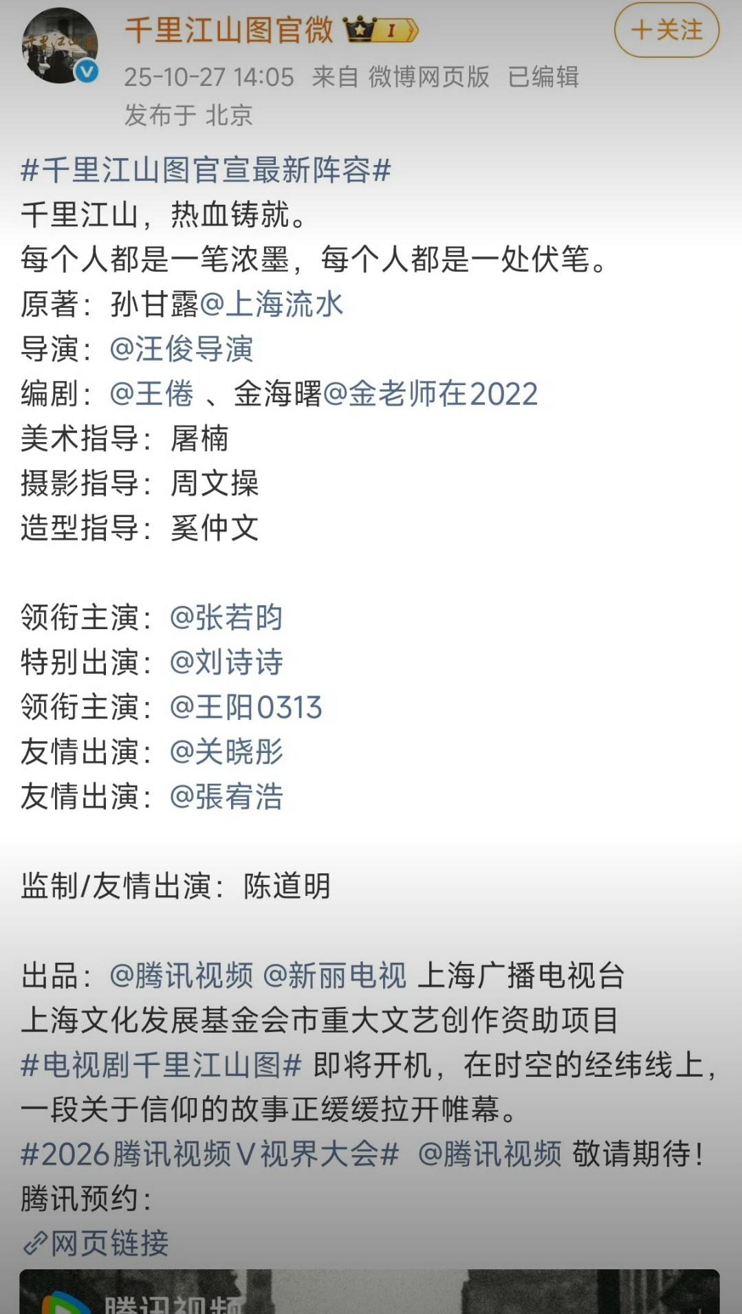 茅奖原著+陈道明监制+张若昀领衔,《千里江山图》这王炸阵容还藏惊喜!明天官宣李兰迪客串张若昀的白月光初恋,减肥逆袭成古典美女的她,自带旧时光氛围感。1:1还原的民国实景里,素雅旗袍或简约洋装适配度拉满,戏份虽少却有望靠下线即意难平的名场面封神。新物料明天解锁,就等看她的民国造型惊艳全场!