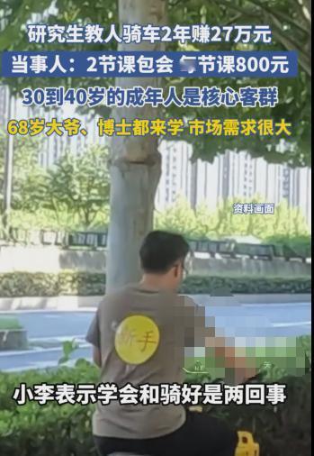 提到研究生,你是不是想到实验室、论文、高端职场?但有人偏不走寻常路教人骑自行车,2年狂赚27万,甚至68岁大爷、博士都排着队学!这操作是不是颠覆认知? 关键是价格一点不便宜:每节课800块,还承诺2节课包会,核心客群竟是30-40岁的成年人。按说骑车是小孩都能快速掌握的技能,为啥成年人愿意花大价钱补课? 其实仔细想想,这钱花得一点不冤!很多30+的朋友,小时候要么没条件学,要么家长没重视,如今通勤要骑车、周末想陪娃骑行、健身想选低碳方式,不会骑车反而成了生活短板。更重要的是,成年人学骑车怕摔、怕尴尬,自己摸索半天没进展,专业教学正好解决了这些痛点2节课包会的承诺,比瞎琢磨省太多时间! 我真心觉得这事儿太励志了!不是说研究生就得搞高大上的工作,能抓住别人忽略的需求,把小事做专业,就是本事。现在大家愿意为高效、省心买单,不管是骑车、做饭还是插花,只要能解决实际问题,小众技能也能撑起大市场。 这也给年轻人提了个醒:创业不用死磕热门赛道,生活里的小缺口可能就是商机。职业没有高低之分,靠自己的能力赚钱,把服务做到位,再小众的领域也能发光发热。不得不说,这位研究生的眼光和勇气,真的值得点赞!