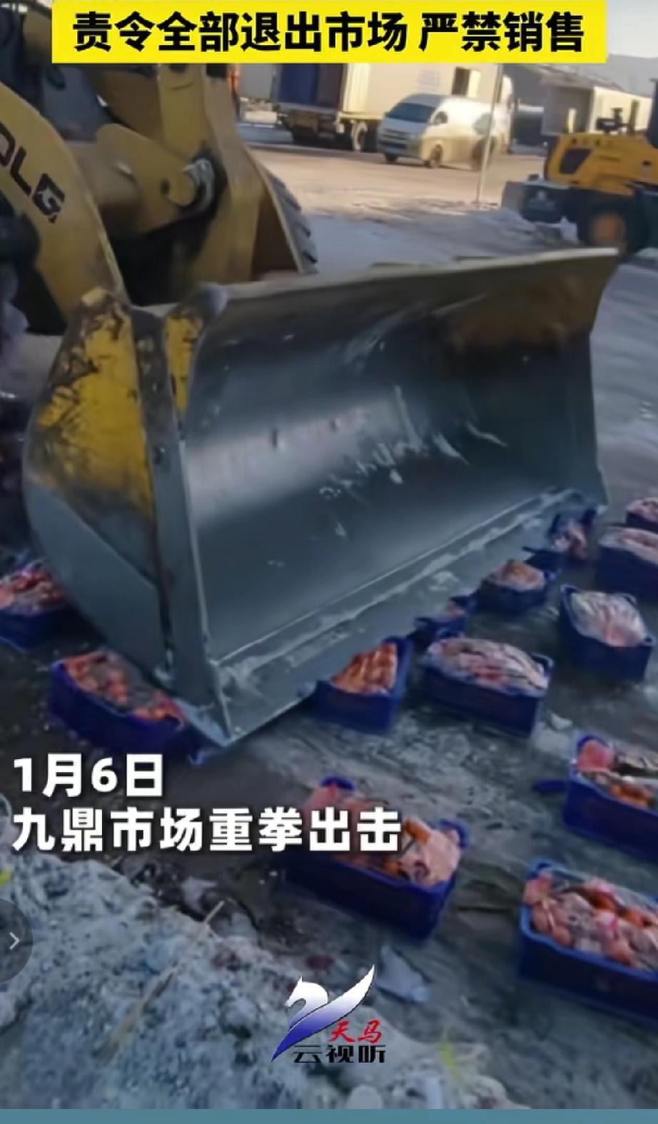 新疆九鼎市场于1月6日查处并销毁一批违规使用着色剂的砂糖橘,对违规砂糖橘进行销毁,部分被直接碾碎,剩余的则被责令全部退出市场,严禁销售,以此来起到警示作用。(来源于@天马云视听)