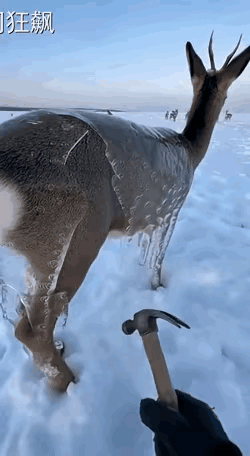 这鹿身上已经结冰了,不知道这是不是真实的情景,不过看到这样的画面之后,感觉还是有些不太相信,在鹿的身上,怎么能够结这么厚一层冰,这有点不符合常理,我小时候在黑龙江住过,当时那里的气温就非常低,我们家养的马和牛就在外面放着,从来没有见过它们身上有结冰的时候,既然家里养的动物都没有结冰,那么野生的就更不可能结冰了!