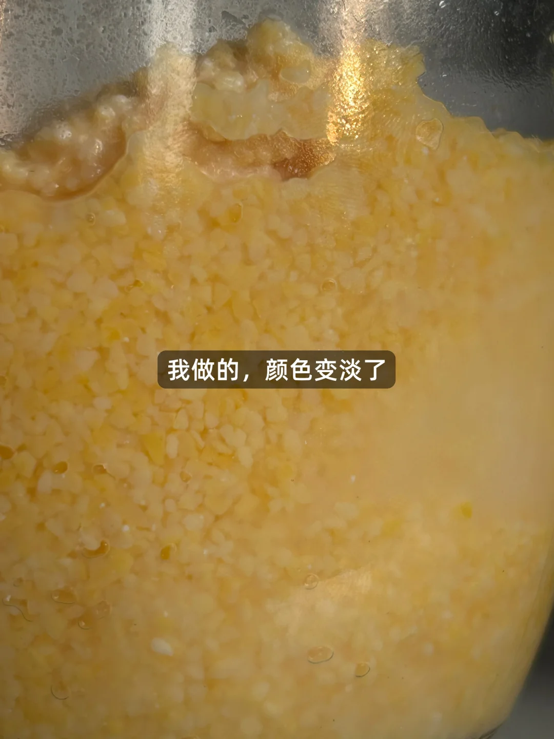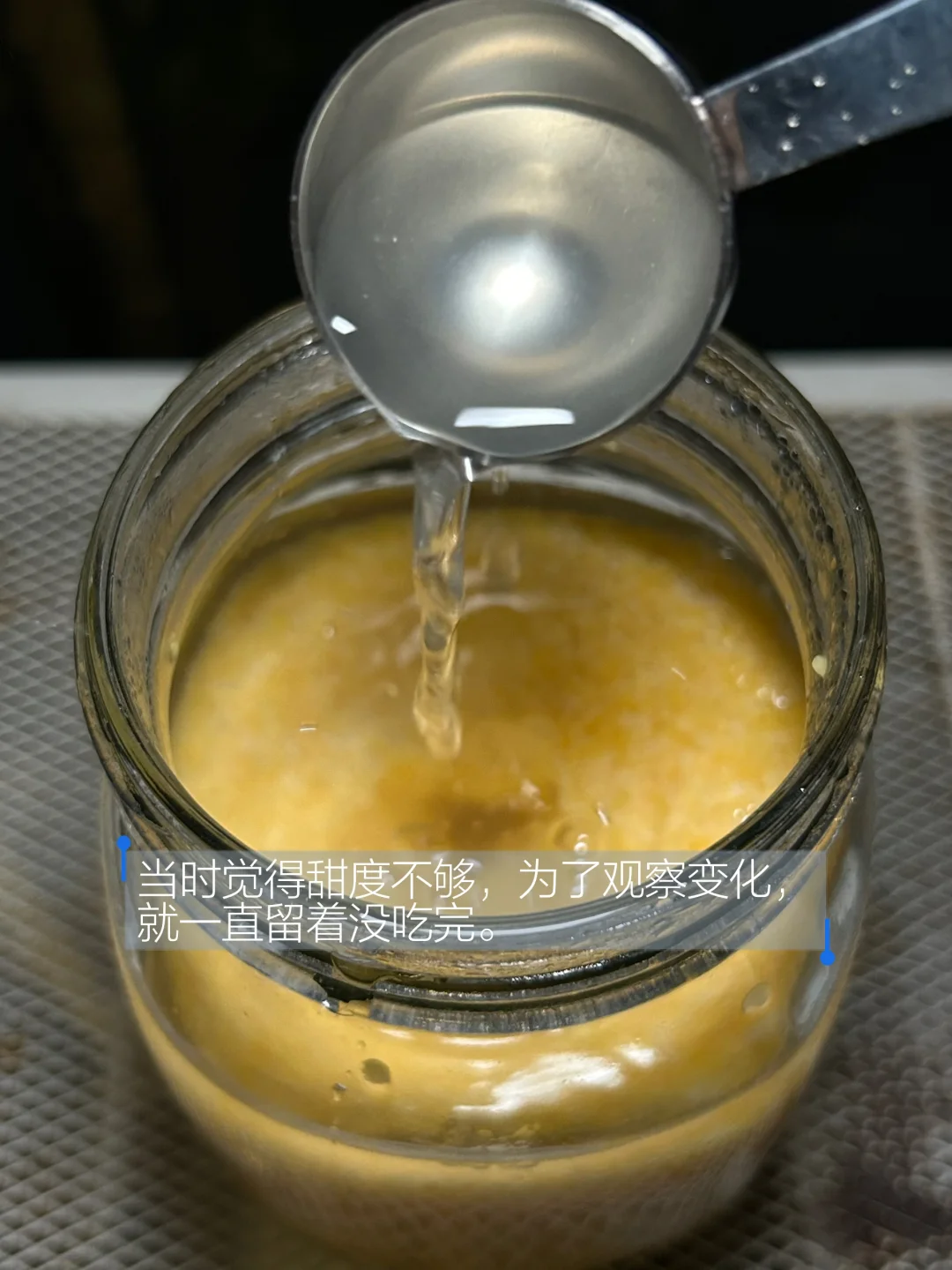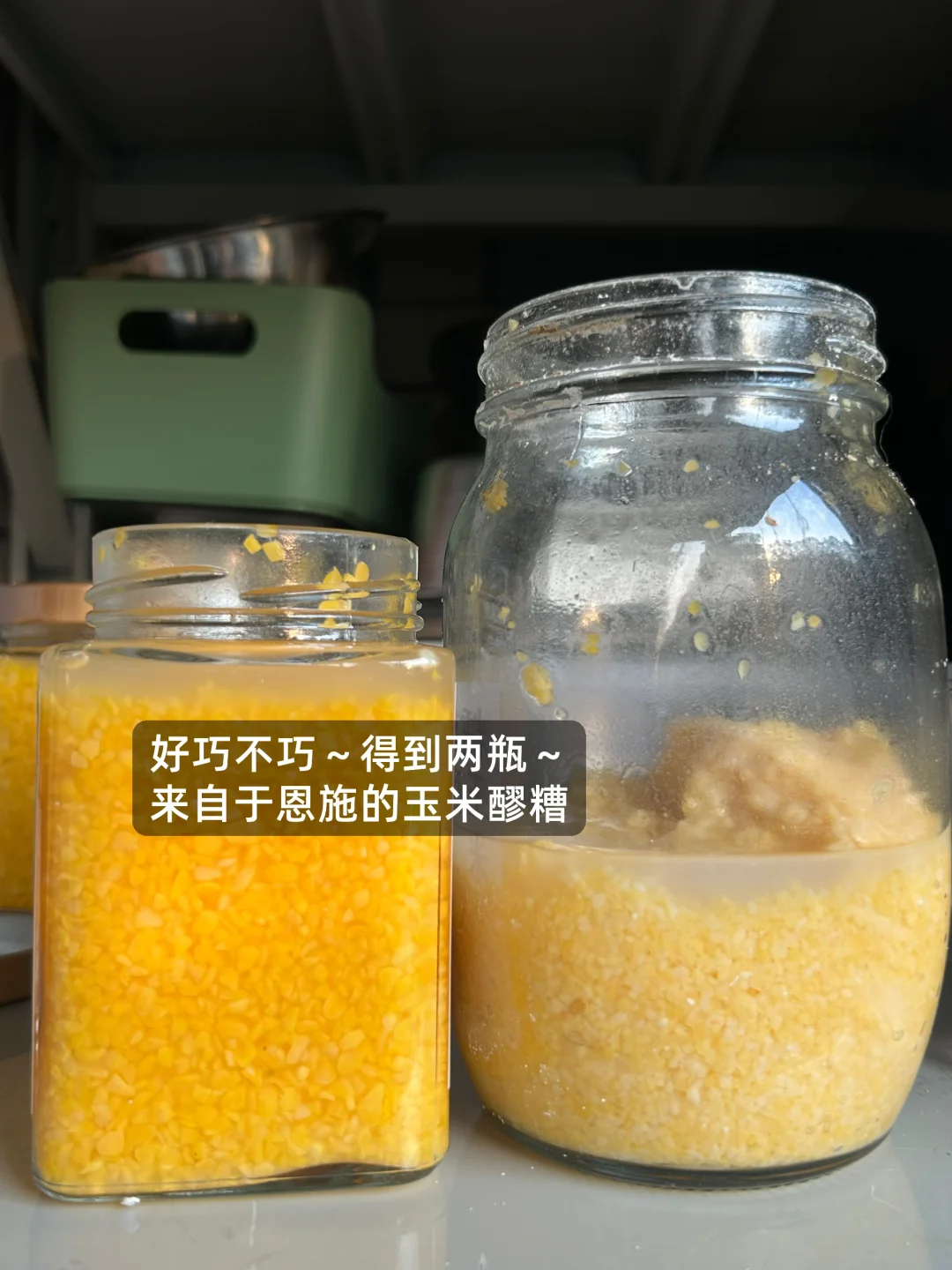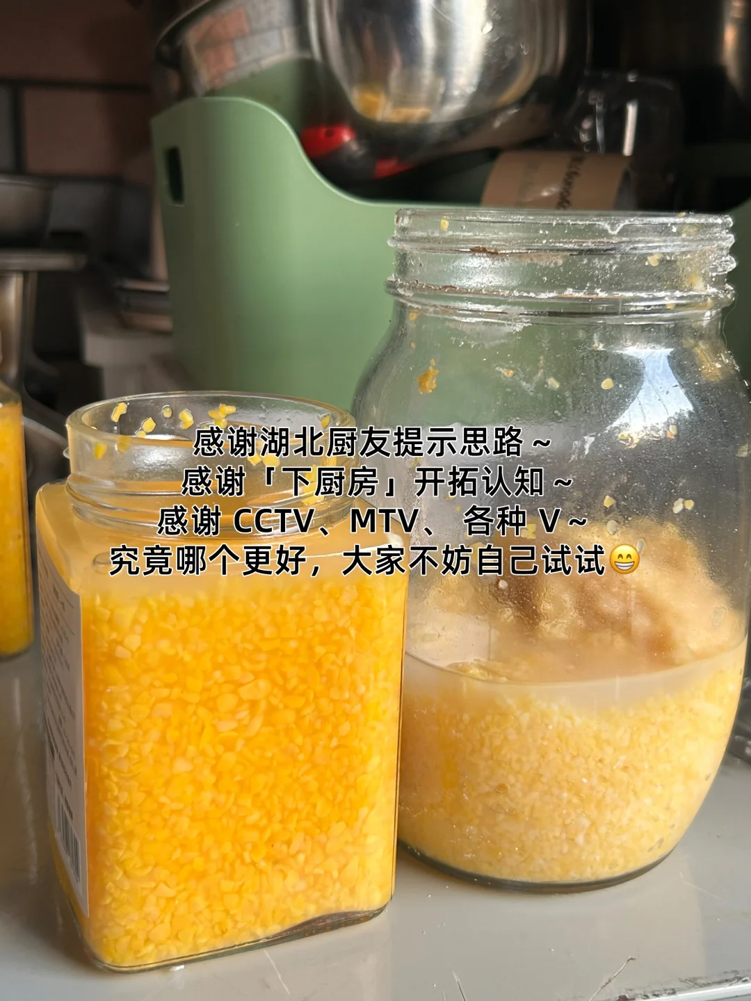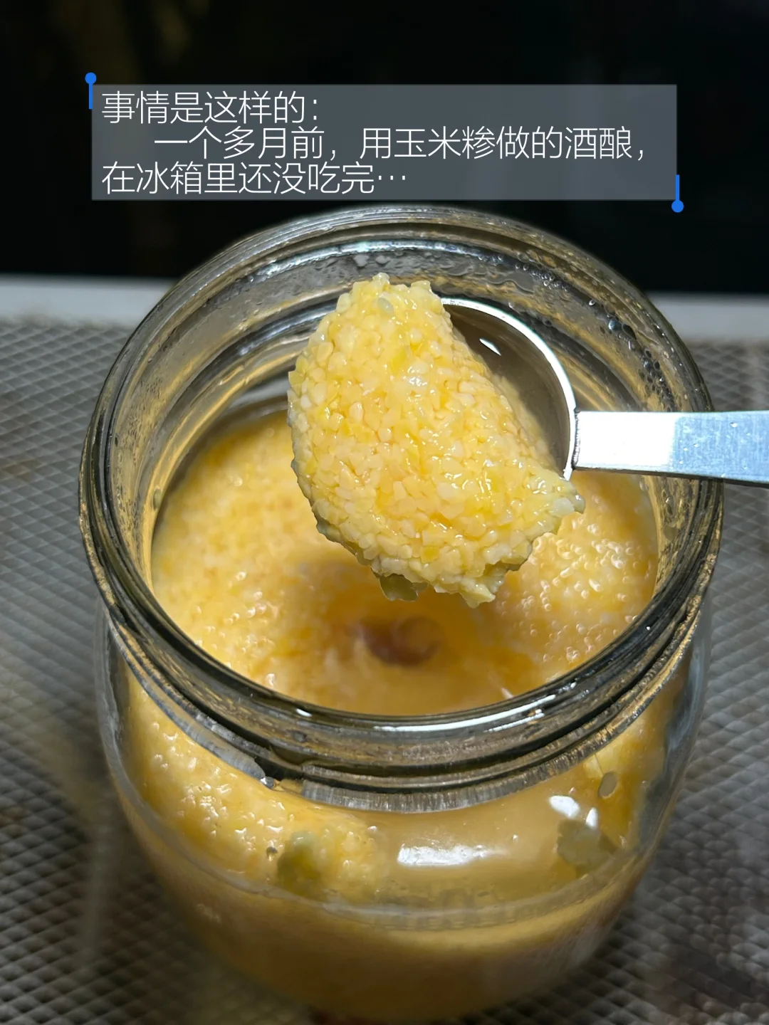 [彩虹R]一个多月前,经由湖北厨友的思路提醒,我做了一瓶玉米糁醪糟酒酿,具体记录,前面有发笔记。 一直没敢吃完,就在冰箱里,[烟花R]以备后续观察变化。 [优惠券R]好巧不巧,下厨房 app 赠与两瓶来自于恩施的正宗糯玉米酒酿,刚好拿来做个对比了,也算给我这自制工艺打个版。 具体对照记录: [一R]自己做的,经过长时间发酵,颜色明显变淡了。 而工业生产,色泽保持很好。👍 [二R]自制玉米糁酒酿,更加类似于糯米酒酿,在甜味的同时,还有丰富的酒香风味儿,很适合加热饮用。 工业生产,灭活更彻底,是纯纯的甜,非常甜。 [三R]自制玉米糁醪糟,口感沙沙的,颗粒感很强。 工业生产,软糯口感,悬浮感很强。 具体孰优孰略,我不敢贸然断定,如有兴趣,大家不妨分头一试,咱们在一起交流😁