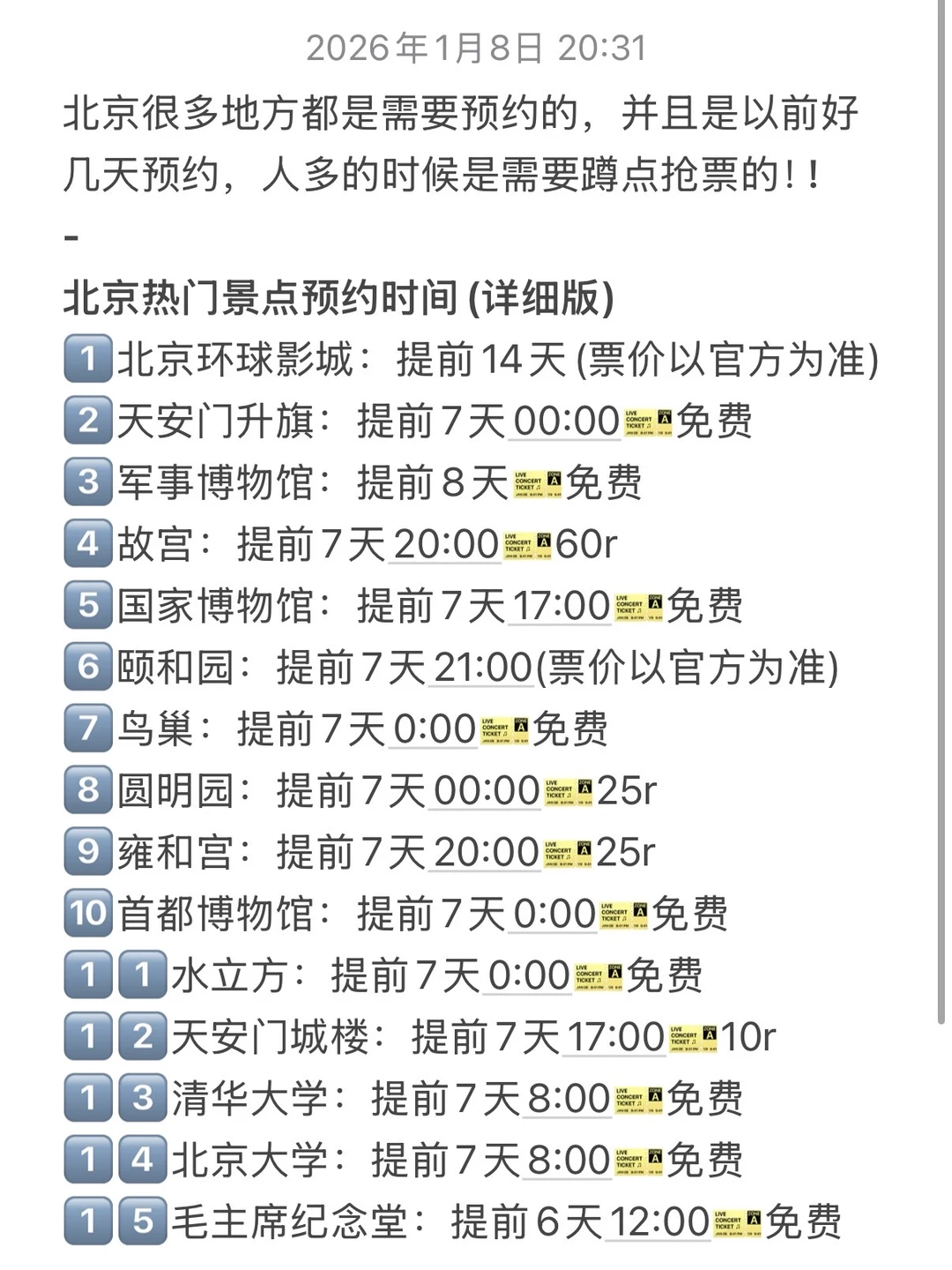 📌 一般周一大部分博物馆/高校关门,可以选择去长城,颐和园,圆明园,环球,雍和宫这些🙋♀️
