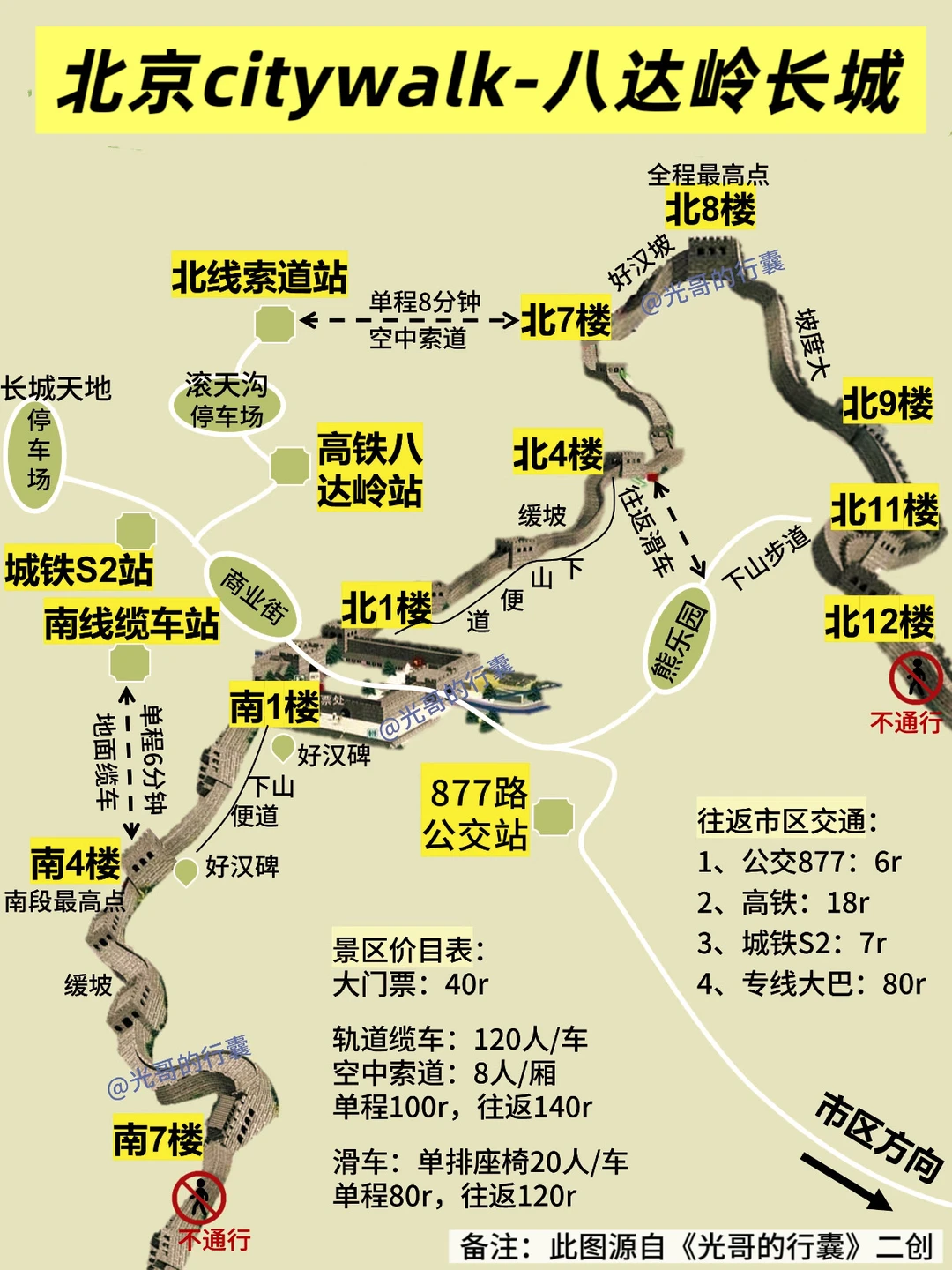 📌长城风大温差大,穿防滑鞋,自带水和零食
