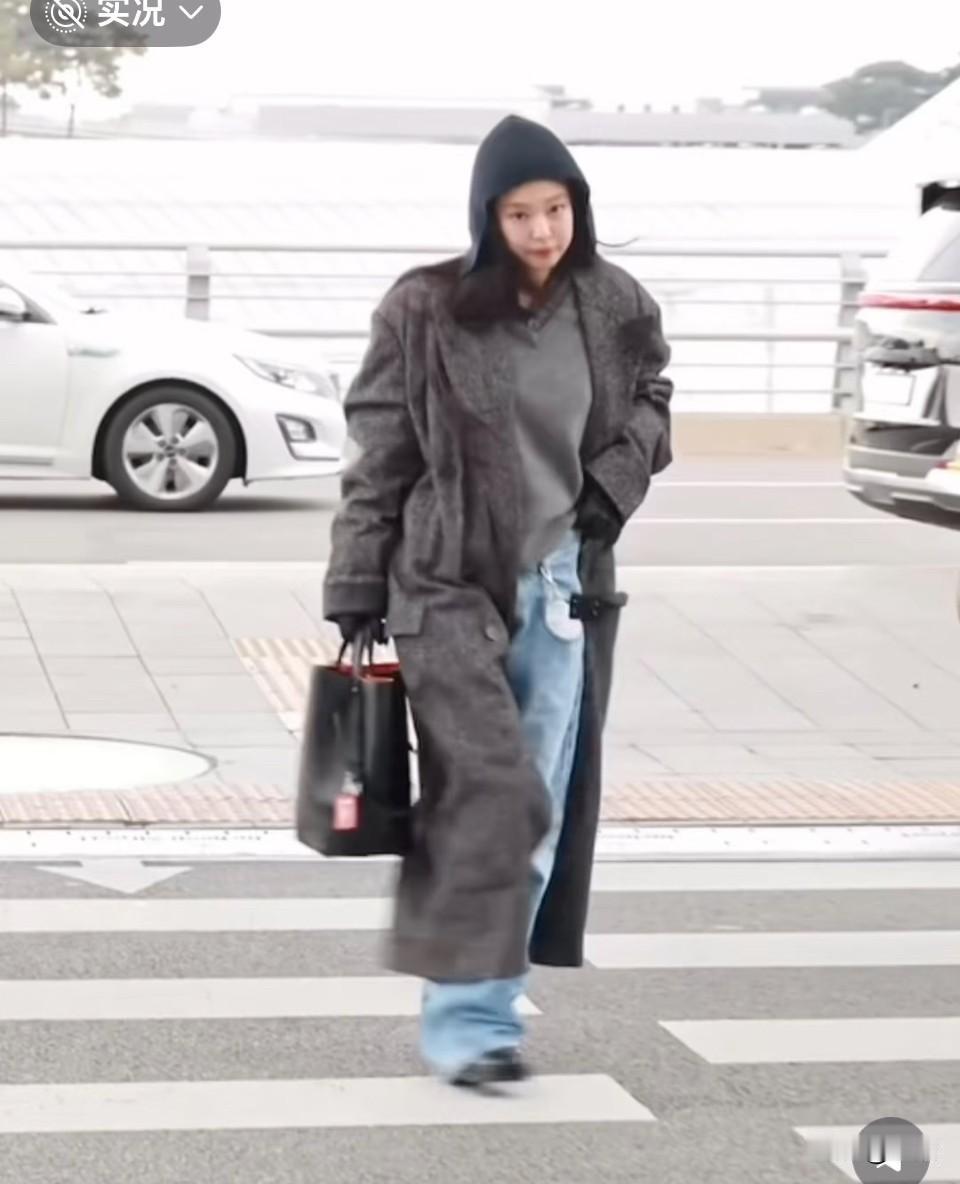 Jennie今日机场出发,可爱小妮 她没多高但是穿这么大这么长的大衣居然完全撑得住不压身高诶! 这套确实比较偏中性,但是奈何她的脸真的好嫩啊好美啊![爱慕] 说实话我觉得这个内搭+大衣一股老干部风,但是机场内脱了大衣单穿又很有质感。马吉拉的大衣和包包真的又没得说……👍 jennie最牛的点是不介意高矮胖瘦,想怎么穿就怎么穿!👍jennie Jennie 金珍妮
