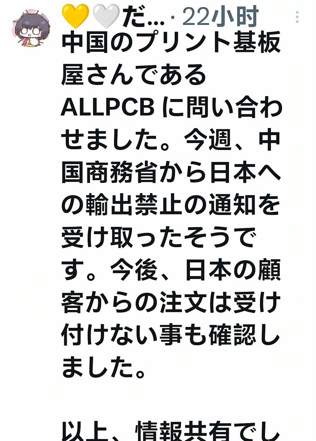 刷到一位日本客户最近在社交媒体上的吐槽,说是联系中国的电路板制造商时,对方直接说