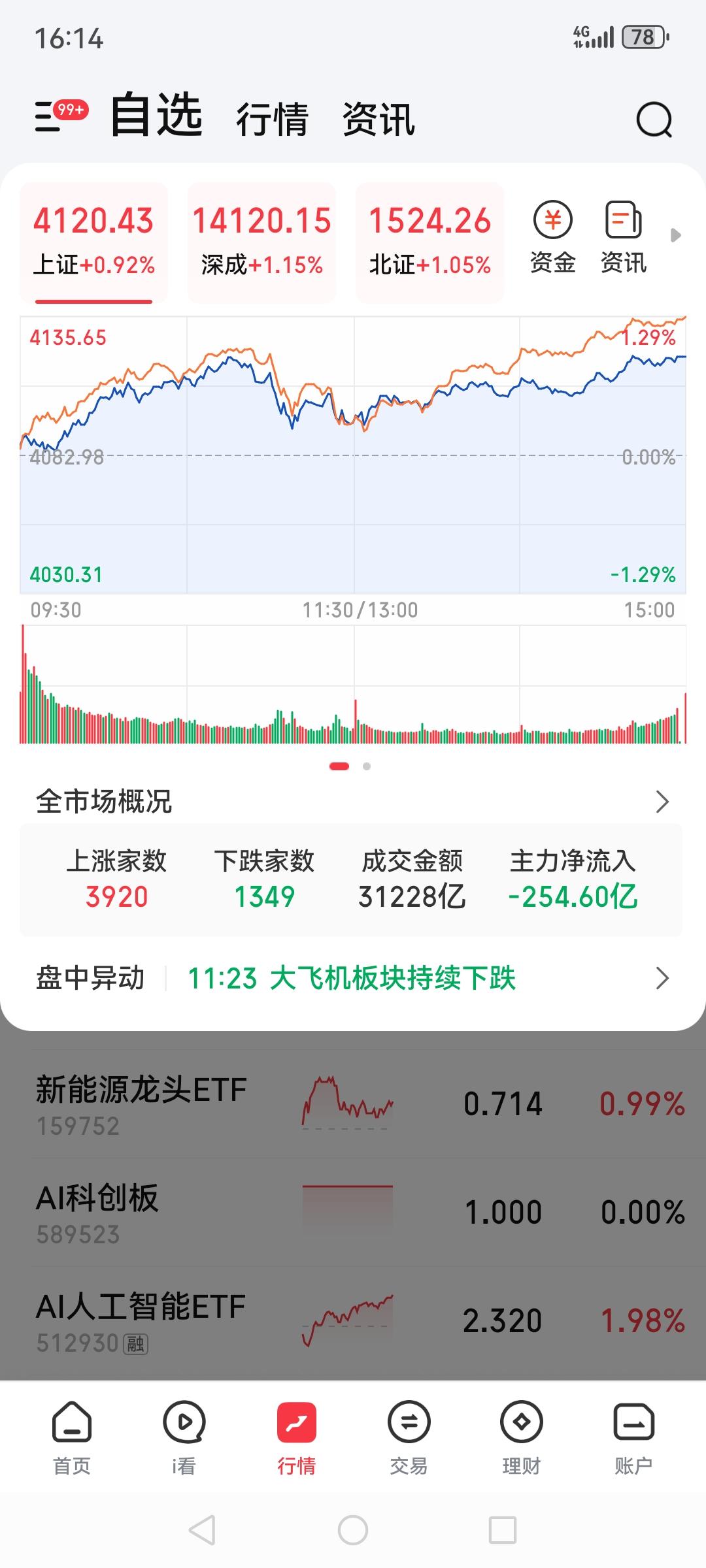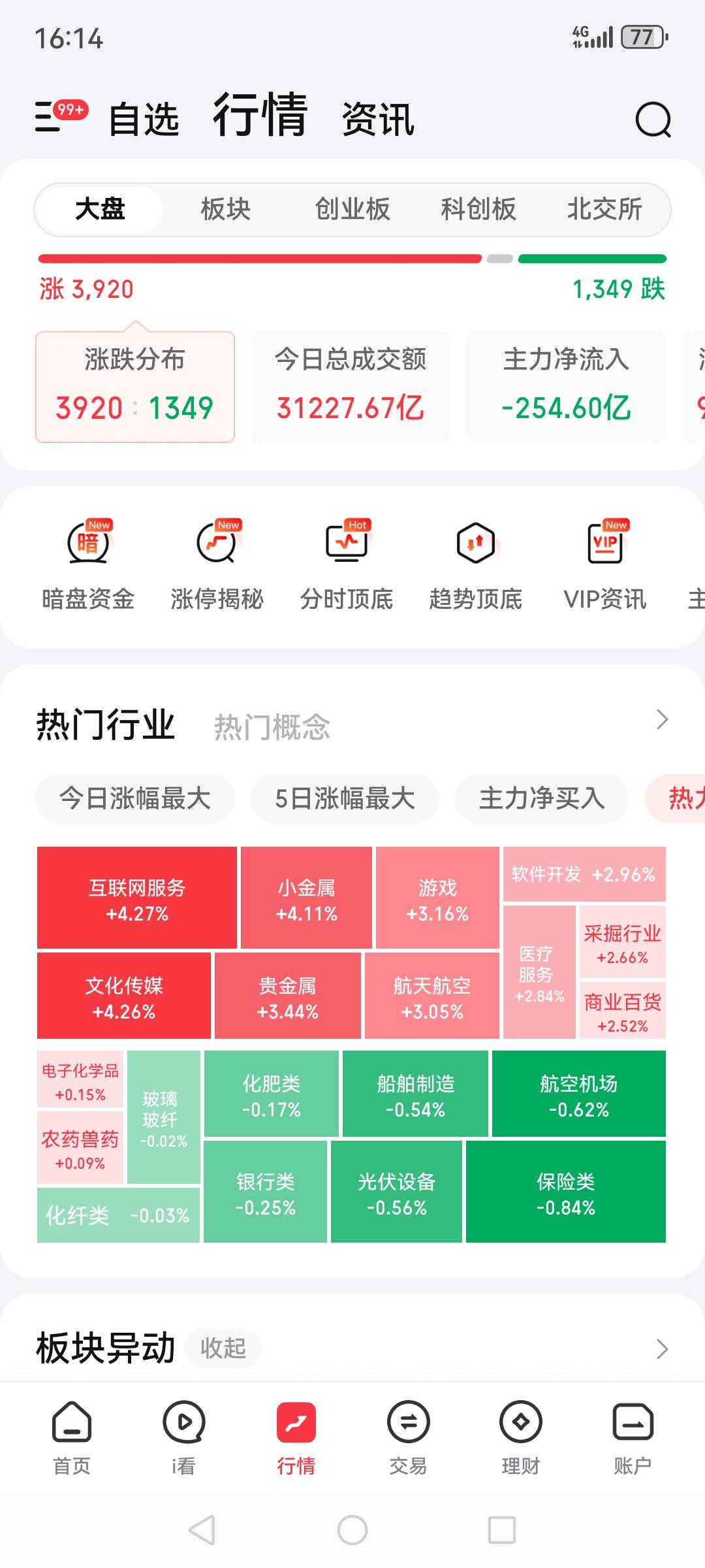 A股又创新高了,突破历史高位4120!真的是2026一开年扬眉吐气了!最近被老美气的不行,A股总算争了口气。 三大指数都大幅上涨,上证涨0.99%,深证涨1.15%,北证涨1.05%,成交量近3年貌似第一次超过3万亿。 互联网,小金属,贵金属,游戏,航空航天,涨的板块涨幅又大范围又广。不过我还是完美错过了,个人收益今天并不多😭,为大A开心A股指数