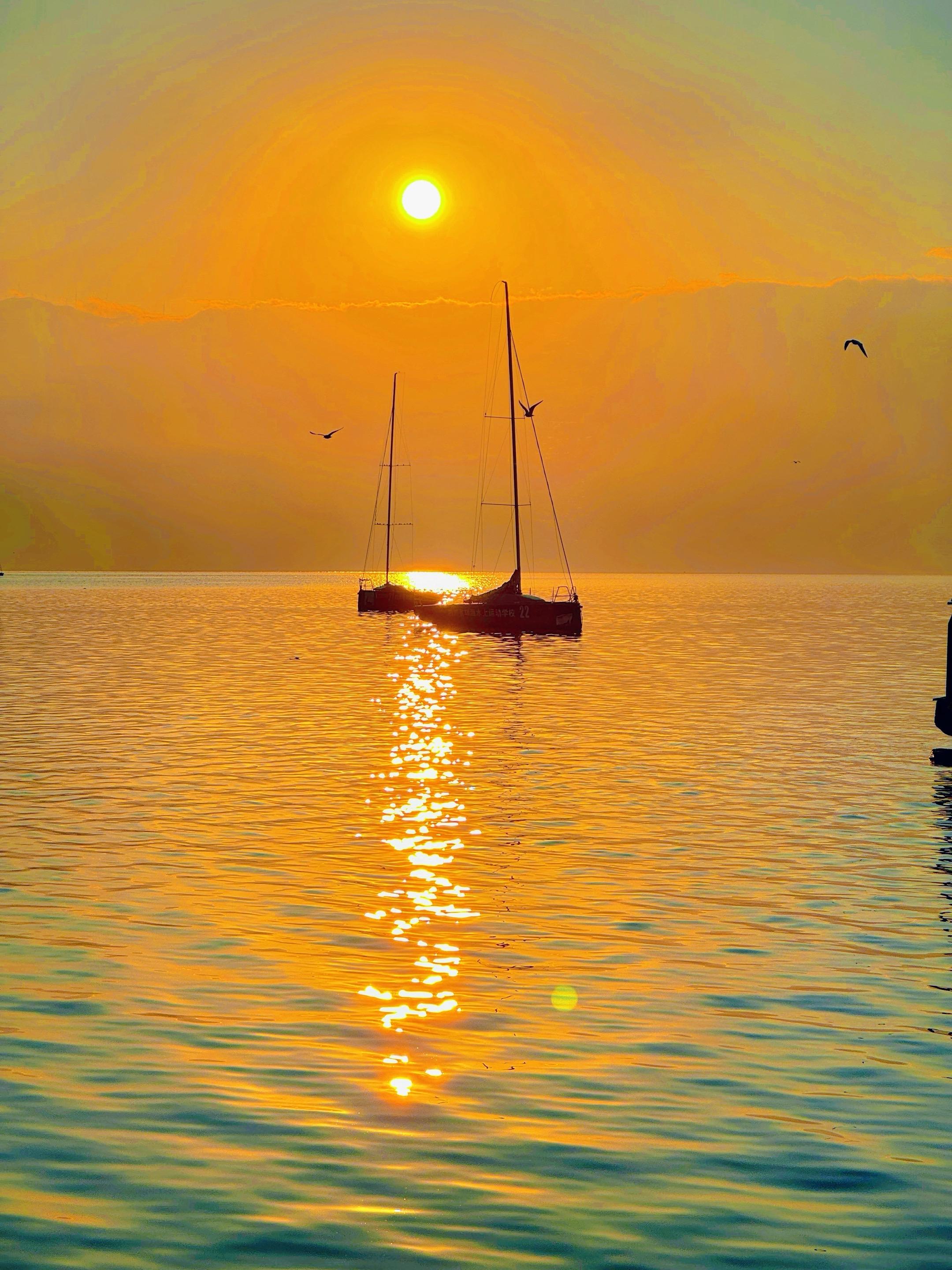 1.2live|西昌橘子海日出美哭了 连续两天来邛海看日出了 朝霞、海鸥、橘子海… 让这里的早晨美成了一幅画 . 📍导航:邛海钓鱼台 🕐日出时间:8:00