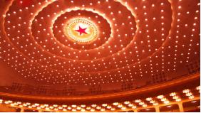 1959年,人民大会堂迅速竣工,耗时不到一年。毛主席来参观时,突然指着天花板笑着问:“这是谁的主意啊?” 人民大会堂的建设堪称奇迹,1958年下半年动工,要在短短一年里完成这样规模宏大、工艺复杂的工程,放在当时的条件下难度极大。 每天都有上万名工人奋战在工地上,没有周末和节假日,累了就躺在工地边歇一会儿,醒了继续干活,连不少名人志士都主动来参加义务劳动。 从设计方案敲定到施工落地,每一步都争分夺秒,却从未放松对品质的要求。 光是设计方案就征集了上百个,经过反复讨论修改,才确定最终方案,而天花板的设计,更是在多次打磨中才呈现出最终的惊艳效果。 最初设计天花板时,难题接踵而至,万人大礼堂空间开阔,层高极高,墙面与屋顶衔接处容易显得生硬,既影响美观,又要兼顾照明和通风功能,不能只顾着好看而忽略实用。 负责装饰设计的团队反复琢磨,年轻的设计师常沙娜从敦煌莫高窟的藻井图案中汲取灵感,构思了带有唐代风格的莲花瓣纹样,希望将传统文化元素融入其中。 可方案初稿出来后,总设计师立刻提出了问题,只单纯设计花瓣纹样,无法容纳照明和通风设备,装饰效果必须与建筑功能结合才行。 在周总理的启发和总设计师的指导下,设计团队不断优化方案。 常沙娜调整思路,把中心的莲花纹样与照明系统结合,在莲花中心布置光源,外围再用成串的小花设计成项链状的点光源,既解决了照明问题,又让整个顶棚看起来层次分明、浑然一体。 通风口也被巧妙地隐藏在纹样间隙中,不破坏整体美感,整个设计没有照搬传统藻井样式,也没有生硬套用西方风格,而是将敦煌文化的精髓与现代建筑需求融合,形成了独特的视觉效果。 毛主席参观那天,万人大礼堂里光线充足,穹顶的红色五星灯在莲花纹样和金色光芒线的环绕下,显得格外庄重大气。 五星象征着党,周围的纹样则暗含着群众拥护党的寓意,既符合时代内涵,又充满艺术感。 他缓缓走进礼堂,目光从地面扫到穹顶,在天花板处停留许久,脸上渐渐露出笑容,才随口问起设计的由来。 身边陪同的工作人员赶忙介绍了设计团队的付出和方案打磨的过程,着重说起敦煌元素的运用和功能的兼顾。 这个天花板设计,早已超越了单纯的装饰意义,在没有计算机辅助设计的年代,设计师们全靠手绘图纸,从缩小比例的草图到等比例的大样图,每一笔都细致入微,还要反复核对尺寸,确保施工精准。 施工过程中,工匠们更是精益求精,金色纹样的勾勒、光源的安装角度,都经过反复调试,力求达到最佳效果。 最终呈现出的天花板,不仅解决了大空间的照明通风难题,更用传统元素传递出文化自信,让这座现代化建筑多了几分东方韵味。 毛主席的这一问,看似随意,实则是对整个设计团队和建设者的肯定,当时的新中国,正需要这样既能展现国家实力,又能彰显文化底蕴的建筑。 人民大会堂的每一处细节,都凝聚着集体的智慧,天花板的设计就是最好的例子,不是某一个人的突发奇想,而是设计师、工匠、领导们反复沟通、集思广益的结果,是传统与现代、美观与实用的完美平衡。 这座建筑之所以能成为经典,正因为它处处体现着以人为本的理念,天花板的设计不追求华丽浮夸,而是在满足功能需求的基础上融入文化内涵,就像人民大会堂本身,既是庄重的政治场所,也是承载着人民期待的空间。 多年来,无论时代如何变迁,这个穹顶始终静静矗立,见证着无数重要时刻,也诉说着那个年代精益求精、集思广益的建设精神。 参考资料:共产党员网《〈共和国符号〉人民大会堂》