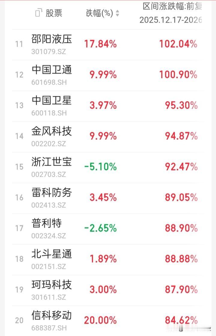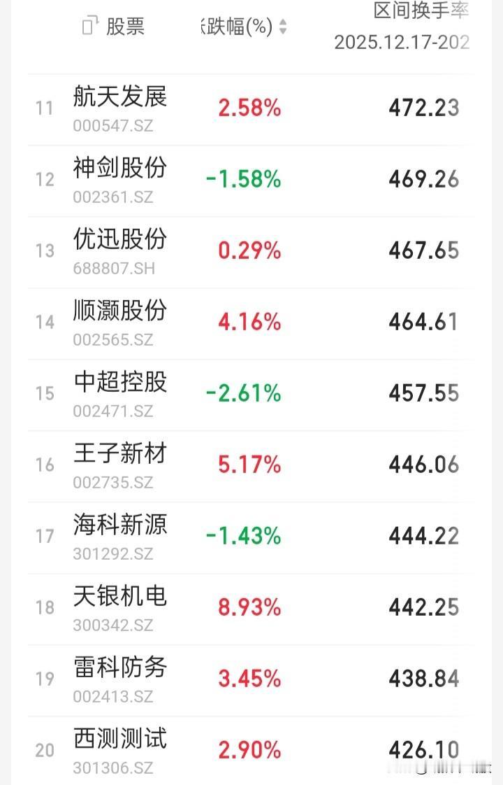 【“跨年16连阳”,气势如虹的记录】 2025年12月17日一2026年1月9日,至现上证指数已连“16跨年阳”,涨幅前三十、成交额前三十、换手率前三十,看看这三个基本数据里都是谁,认真做好复盘研究事项,在以后“倒车接人”可能用得上