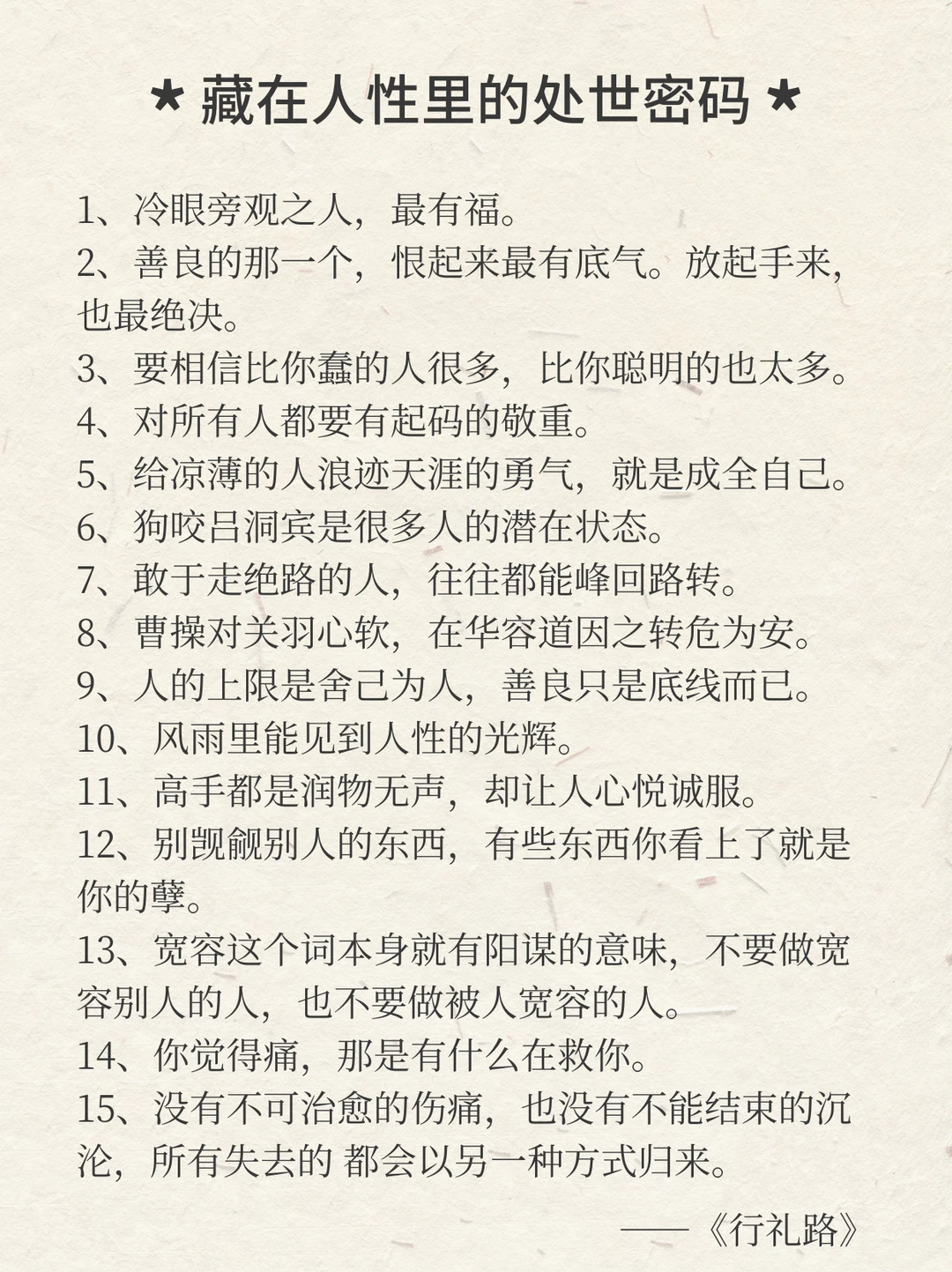 13、宽容这个词本身就有阳谋的意味,不要做宽容别人的人,也不要做被人宽容的人。
