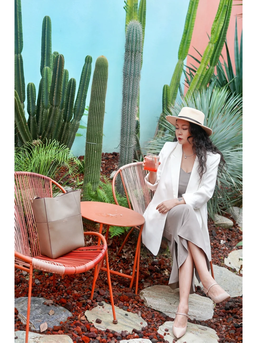 那些关于远方的精彩故事, 那些关于旅行途中的风景和生活, 是日常生活中最珍贵的记忆; 秋高气爽的周末时光不能浪费, 即使不能出远门, 也可以寻个在成都的异国他乡喝个下午茶…… - 停在La Bella,摩洛哥风情小庄园, 有一点文艺,有一点复古, 是故事开始的地方,也是时光停留的地方。 - 👜包:EXCEPTION例外水桶包,这种文艺复古的小众包包一向是我的真爱,头层牛皮彰显质感,不管是上班还是周末度假,用它搭配都很出彩。 🧥西服:我衣帽间里穿戴率最高的还是这件白西服百搭yyds,拍照出片!