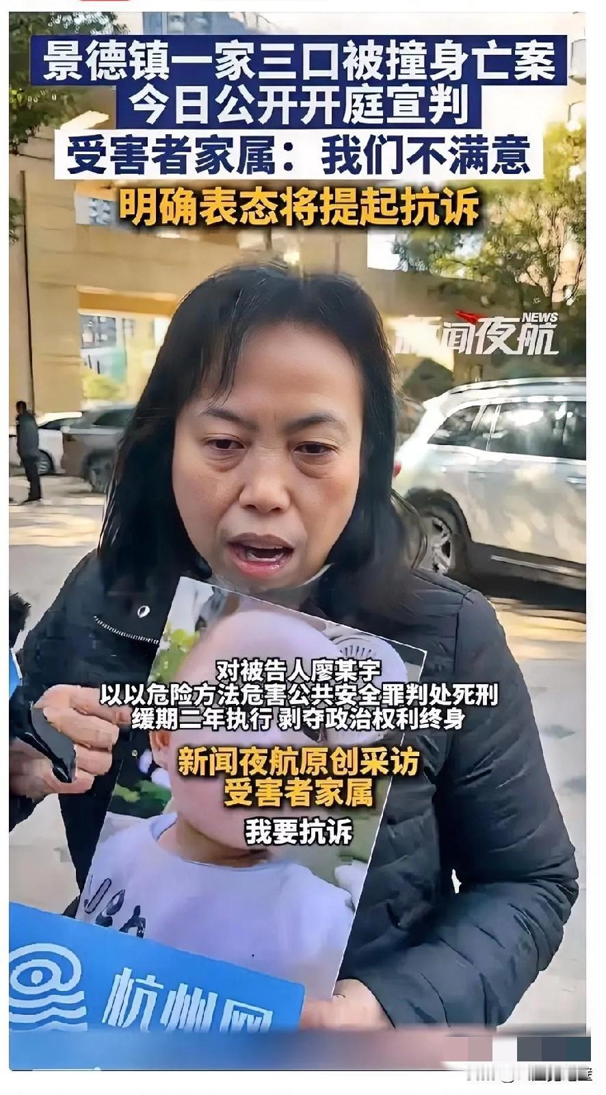现在全网压力最大的当属景德镇检察院和法院了吧。 受害者家属对判决表示不满意,明确表态要再提起诉讼,还有很多网友不买帐,认为缓刑不合适。 这个案件之所以被热议,是因为事故太惨烈,家庭太破碎了! 按理说,法院的判决是依法合规,但是受害人家属很难接受! 尤其是寥某宇家属一点都不拿捏,不仅没有道歉,甚至还扬言要告受害人家属诽谤,这就给受害人家属带来了更大的伤害! 原本这事就挺悲惨的了,还要伤上加伤! 现在检察院和法院面临着巨大的考验,是维持原判还是顺应公众的意见和呼声? 你怎么看?