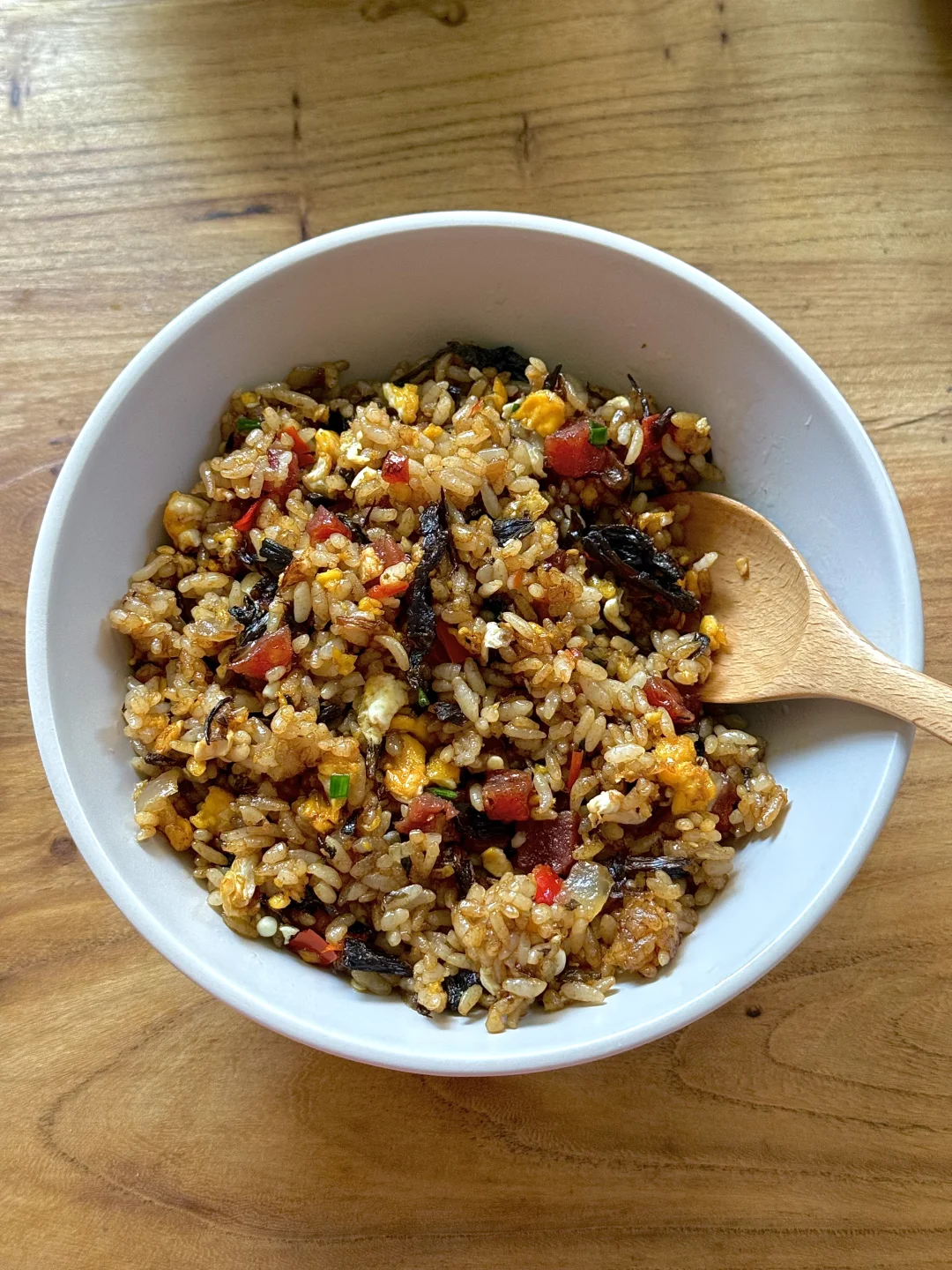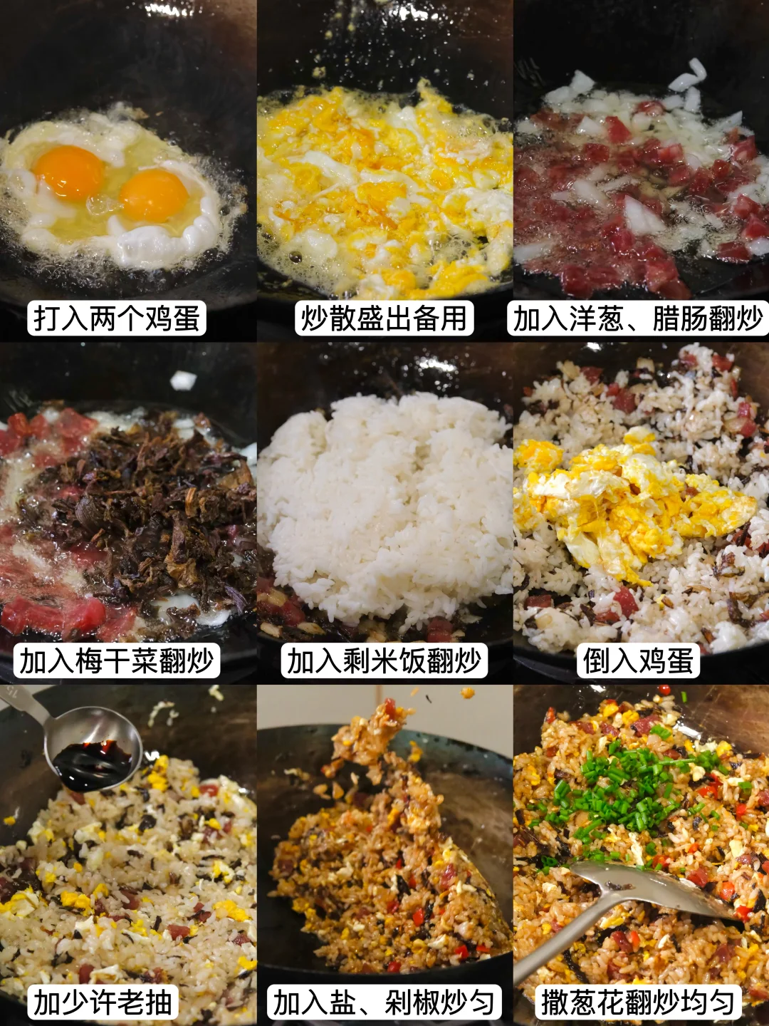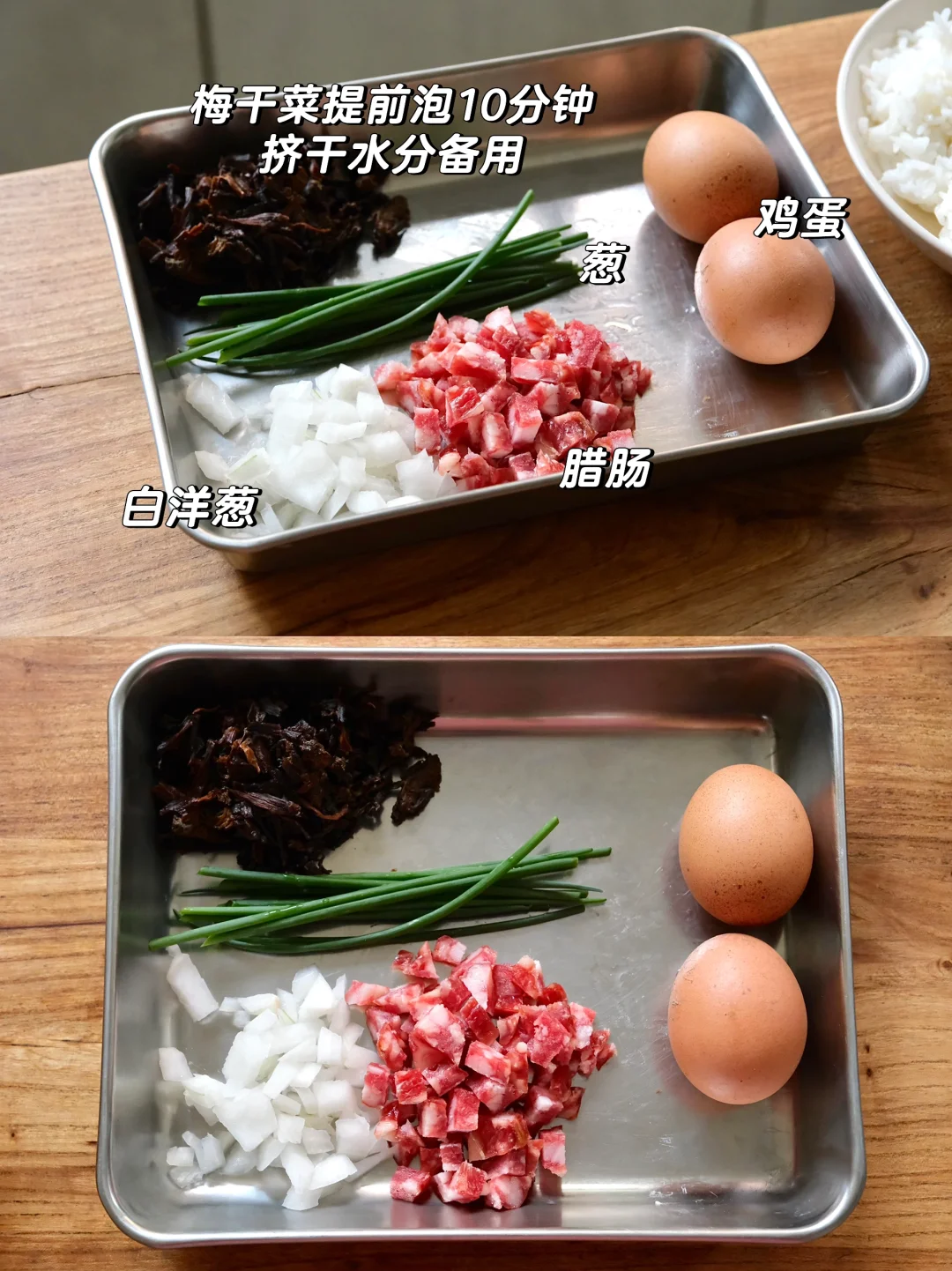 今日消灭剩米饭🍚 腊肠、洋葱、梅干菜、鸡蛋,简单的食材做出超好吃的蛋炒饭,又是被夸的一天[太阳R]