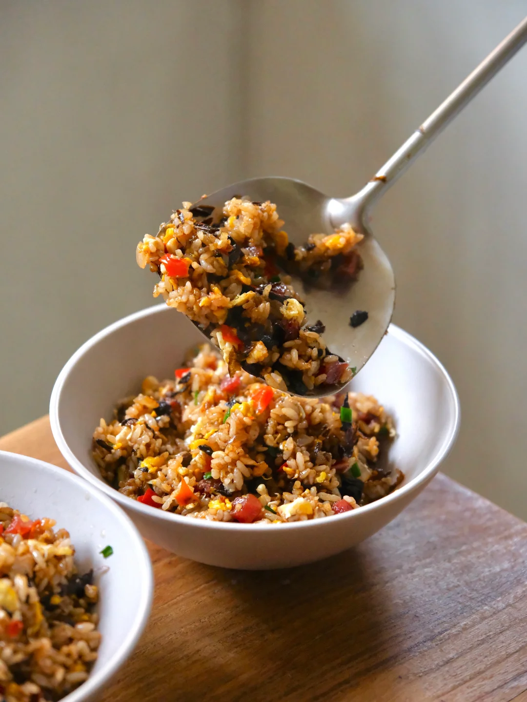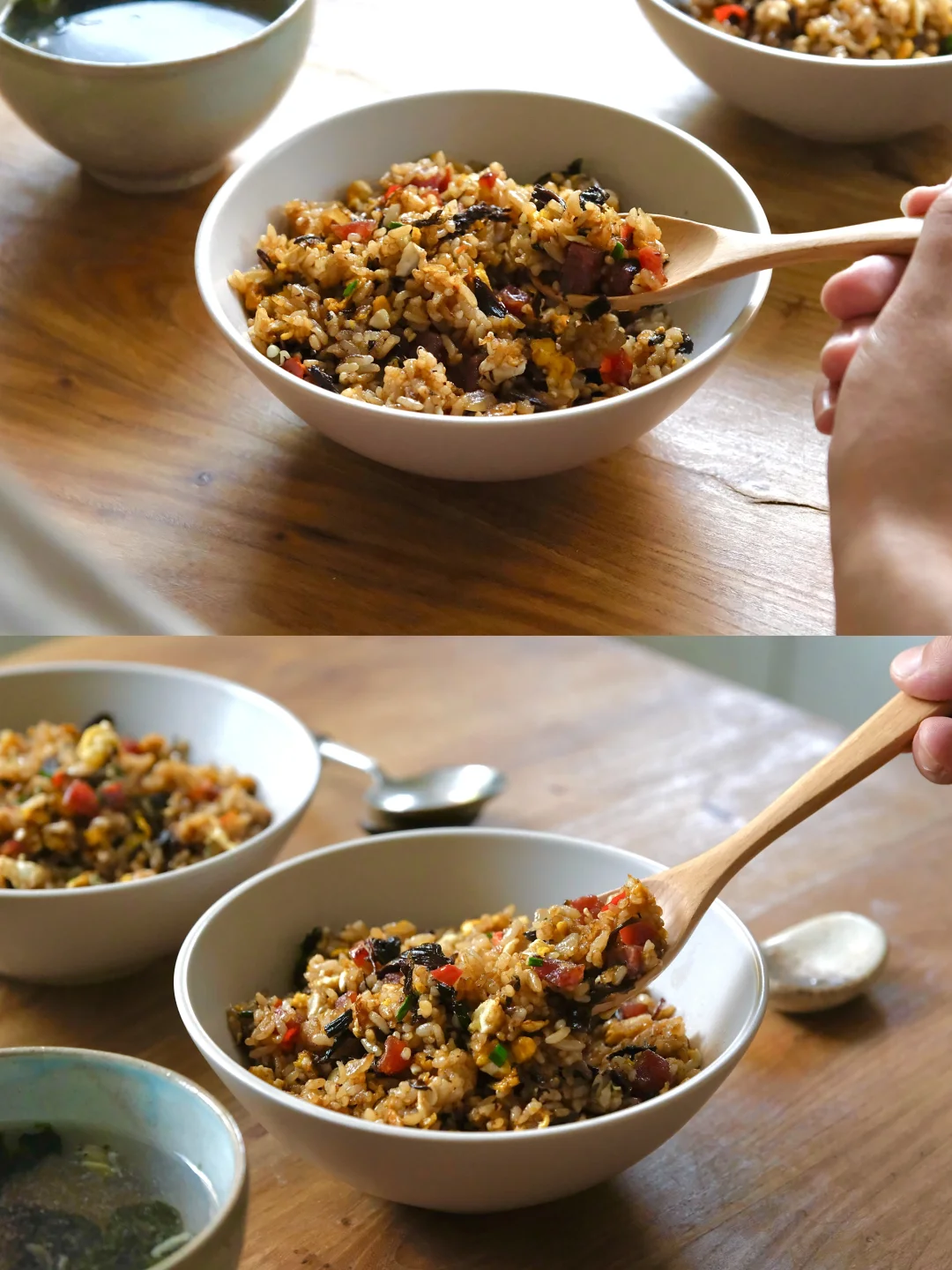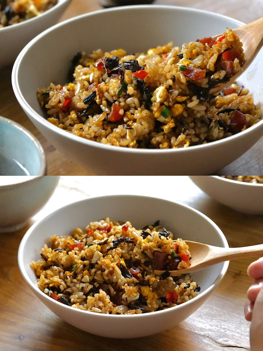 今日消灭剩米饭🍚 腊肠、洋葱、梅干菜、鸡蛋,简单的食材做出超好吃的蛋炒饭,又是被夸的一天[太阳R]