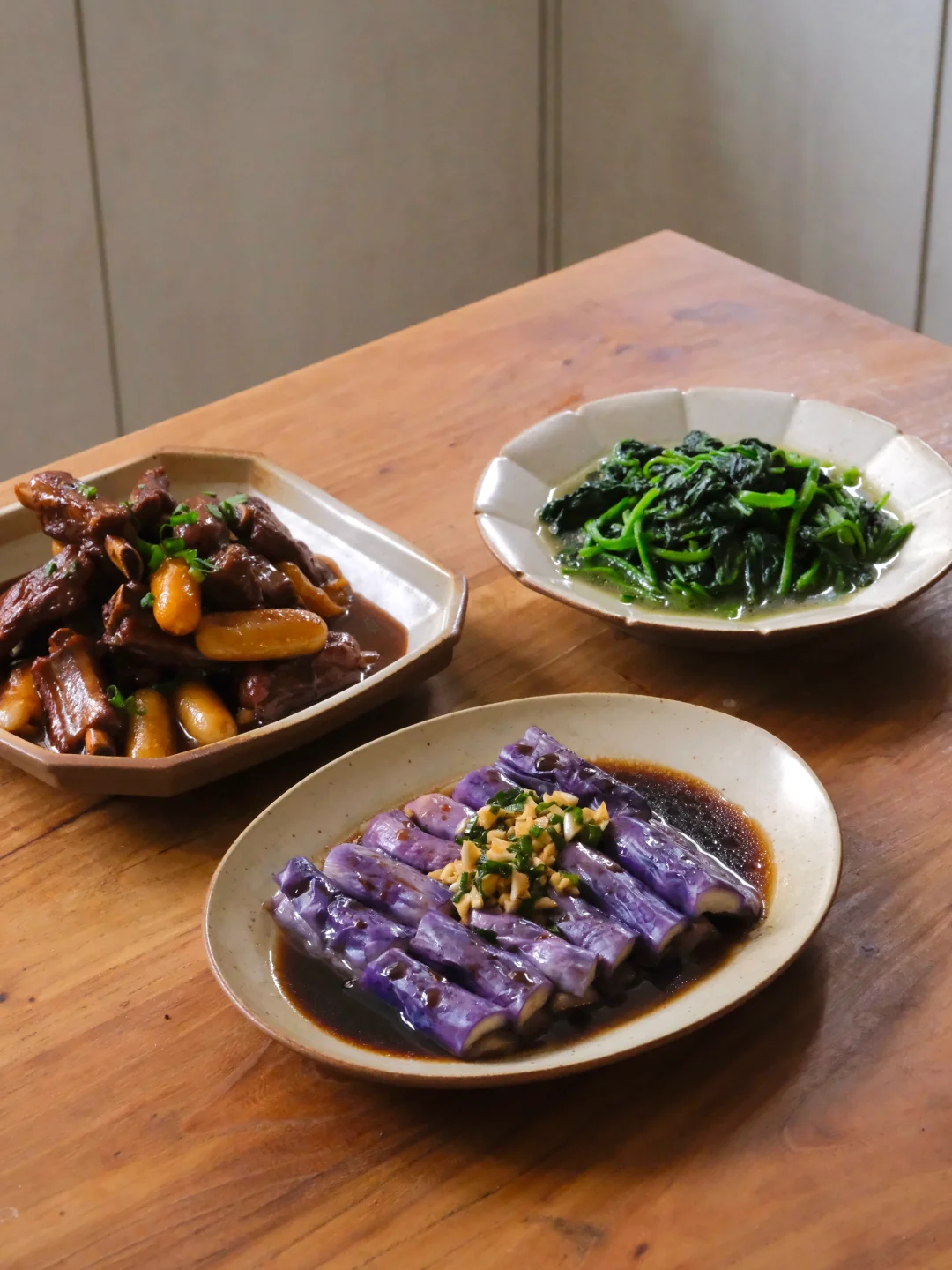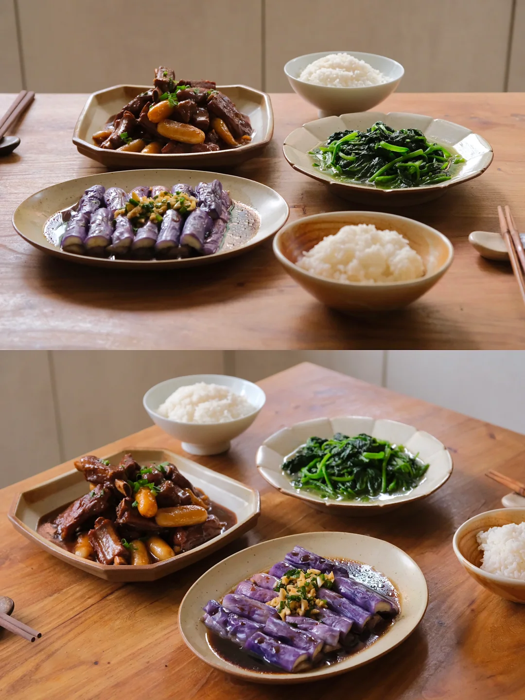 今日菜单: 1⃣️排骨年糕 2⃣️凉拌茄子 3⃣️清炒菠菜 做法依然分享在图片上咯! 今晚的排骨年糕,用的芝心年糕,咬下去会拉丝,浓郁的奶香混着酱汁,糯叽叽的口感,简直让年糕爱好者疯狂心动。 天热了,当然要来点开胃菜,凉拌茄子是个不错的选择。 还有一道,做法很简单,春季尤其鲜嫩的菠菜,不用过多的调料,油热放入菠菜,加点盐翻炒就能搞定。