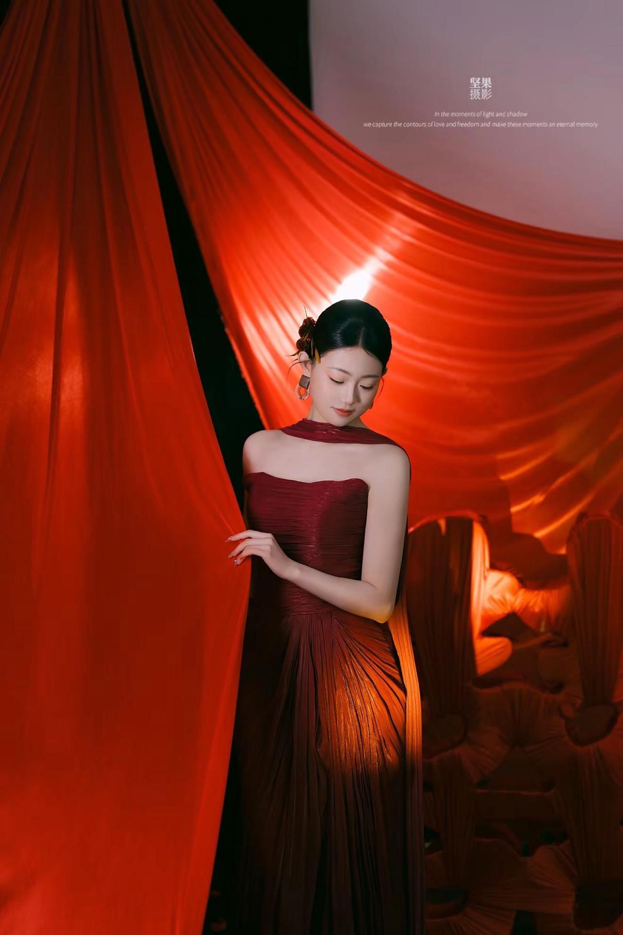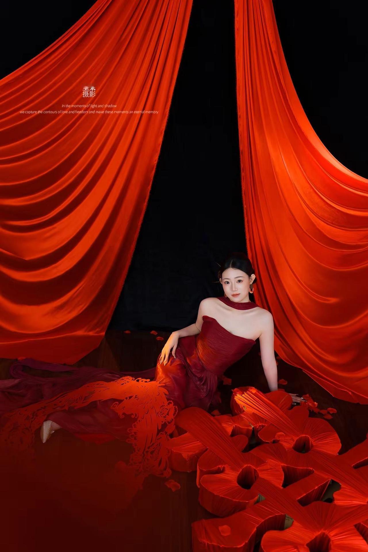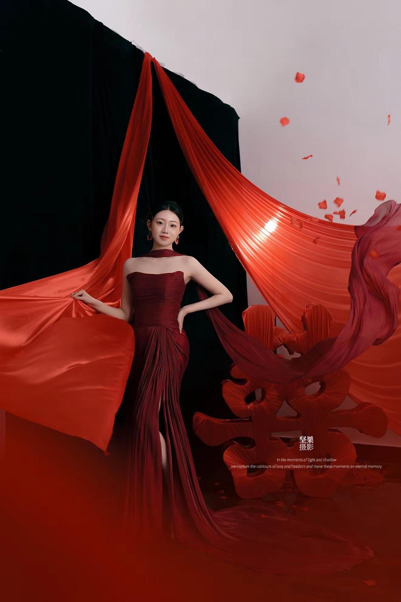 婚礼晨袍简单而不简约的美。中国红才是王炸
