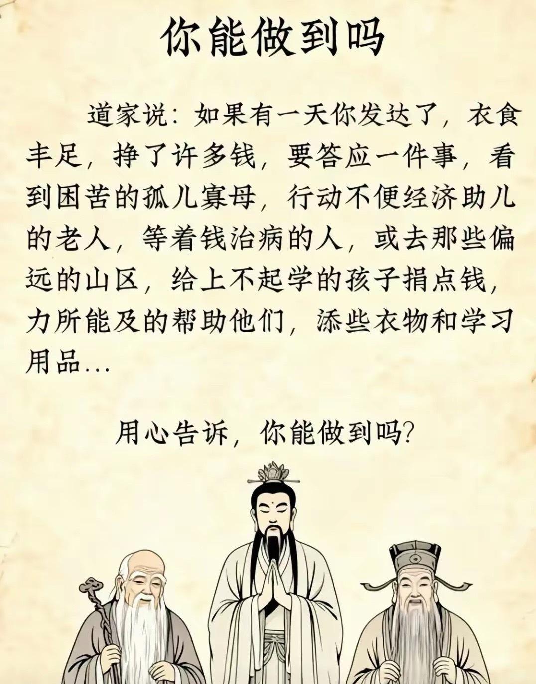假如有一天你发达了,衣食丰足,挣了许多钱,你能做到看到困苦的孤儿寡母,行动不便经济助儿的老人,等着钱治病的人,或去那些偏远的山区给上不起学的孩子,捐点钱、力所能及的帮助他们添些衣物和学习用品吗?