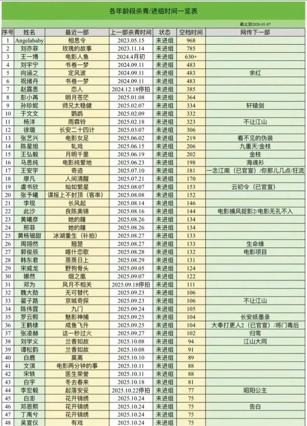 笑疯!内娱最惨劳模李一桐,1天未进组竟被算“待业”? 谁看了这张演员未进组统计表不笑喷!别人动辄几百天空窗期,李一桐1天没进组就被在册,美女是连喘气时间都不配拥有吗? 作为内娱“焊在片场第一人”,她刚杀青就扎进新剧宣传,无缝进组连轴转,感冒带伤都硬扛。这哪是待业,分明是休息=“违规”! 网友调侃:“她的日程表只有进组→杀青→进组”,比打工人还拼。心疼又好笑,内娱劳模天花板非她莫属~