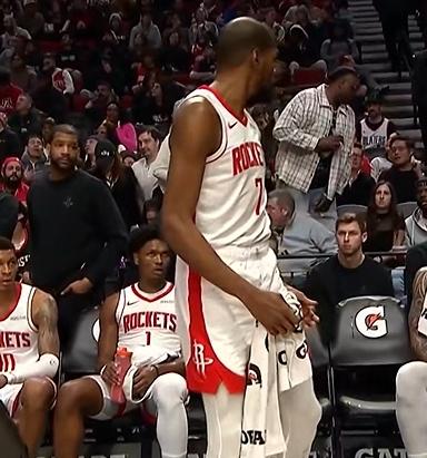杜兰特罕见暴怒!坐在板凳席拿着饮料瓶往地上狠狠地砸下去,饮料都洒了出来,旁边的队友也被吓得有点懵了! 说实话,杜兰特完全有理由愤怒,看看队友们第四节都打成什么样,三分投不进,防守防不住,还不断犯规! 第三节领先13分,但第四节他在场休息期间被对手一波进攻高潮追到只差2分,最后更是被逆转! 火箭已经连续2场输给了开拓者,这是何等的耻辱! 作为一支喊着要夺冠的球队,上一场输了可以理解,这一场还是输,那就真的说不过去了!如果是季后赛,现在已经0-2落后于对方! 看着火箭这蹩脚的阵容,没有组织,没有外线投篮,纵使杜兰特再神勇,又有何用? 愤怒,或许是唤醒队友的最好方式!