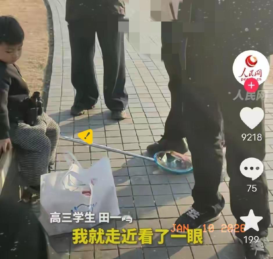 上人民网了!河南郑州,高三学生田一鸣在康平湖公园散步,一个塑料袋引起了他的注意。