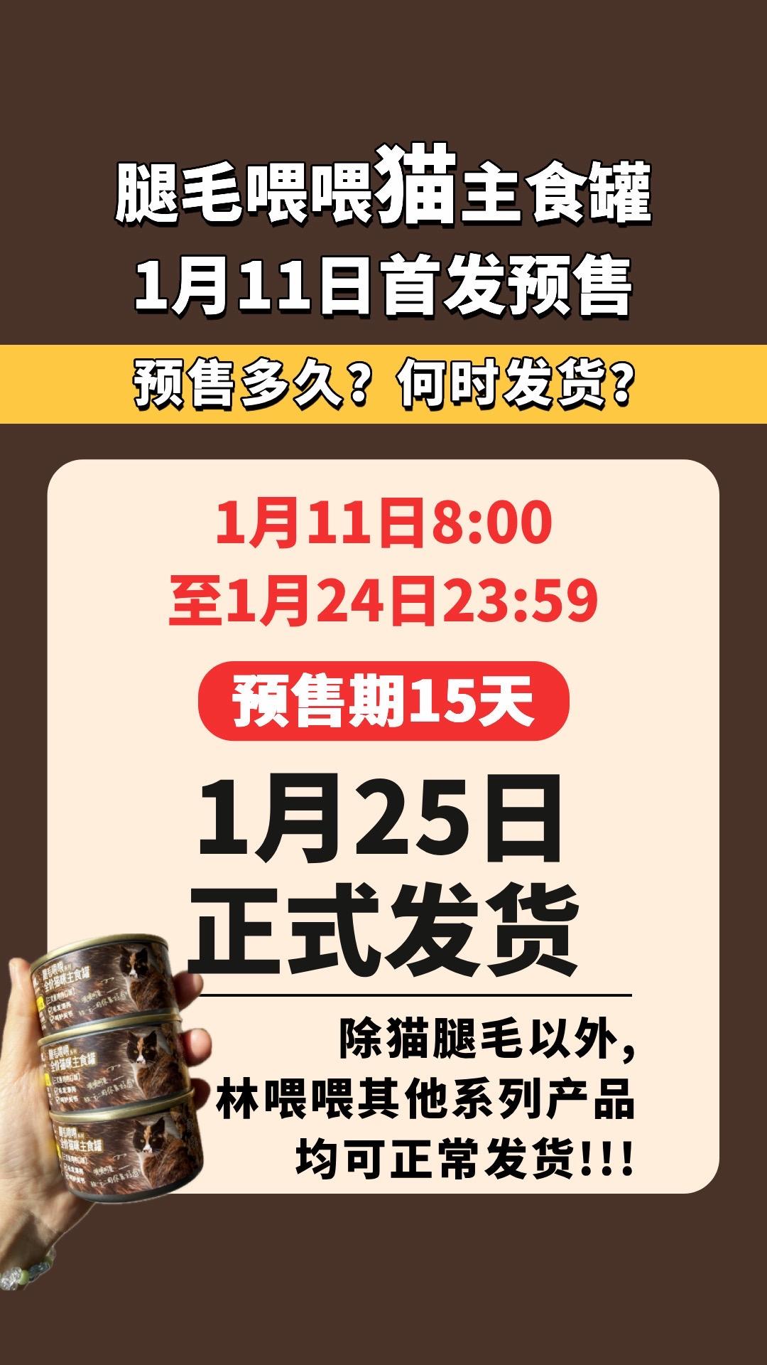 腿毛喂喂猫主食罐1月11预售活动一次说清。1月11日8点-12点在这里播播,不许走错!