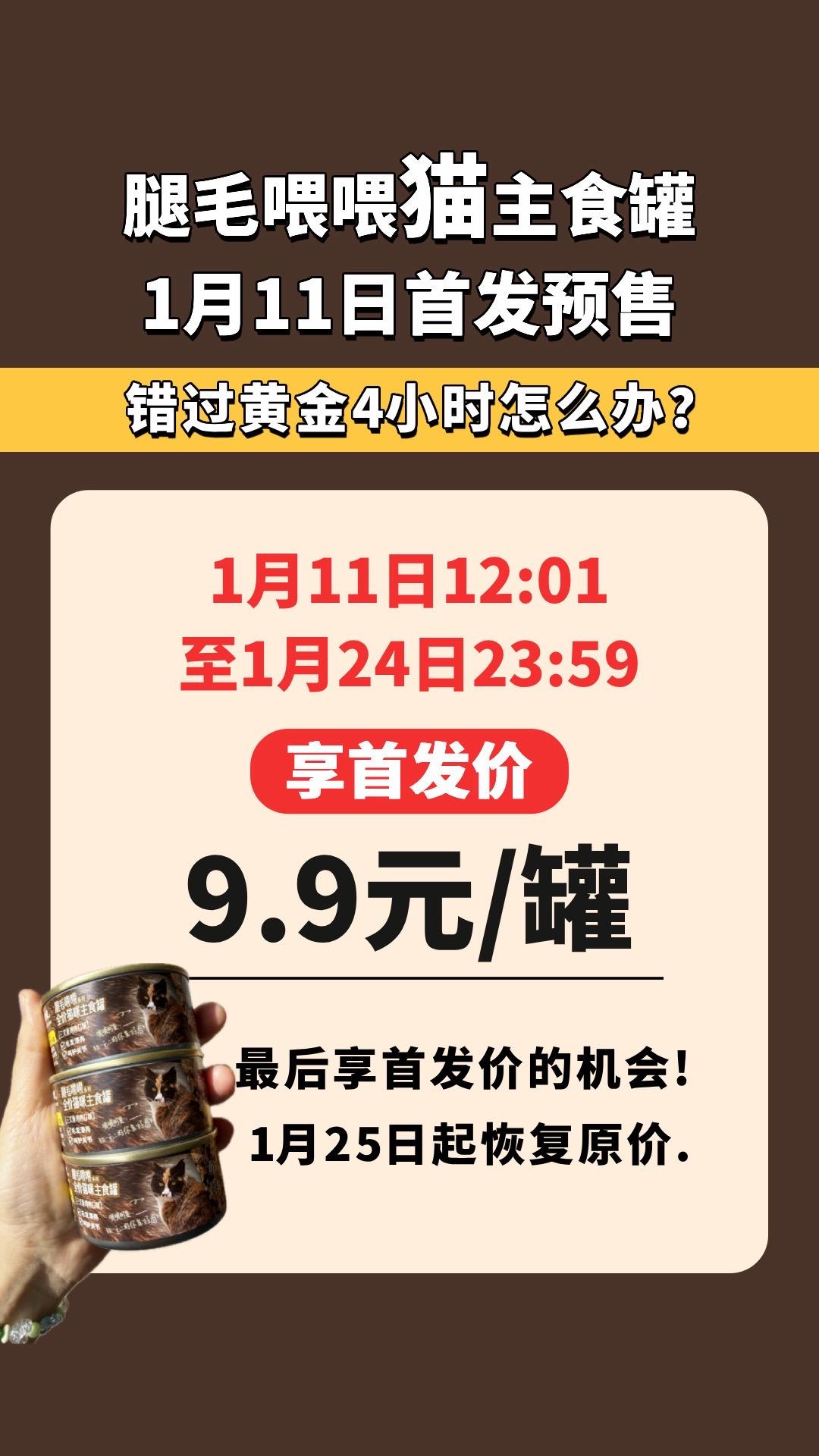 腿毛喂喂猫主食罐1月11预售活动一次说清。1月11日8点-12点在这...
