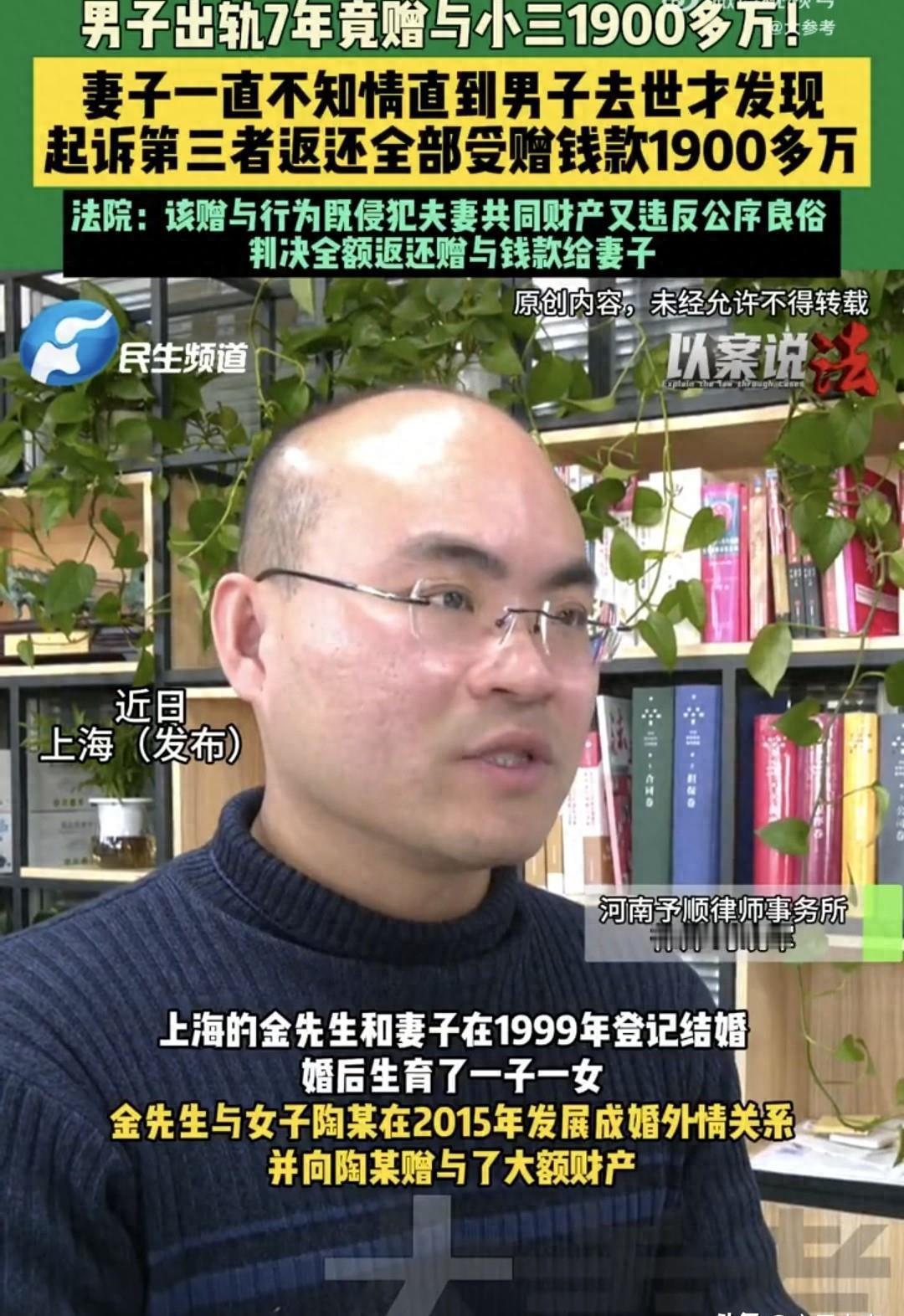 亡夫偷偷给情人1900万,上海法院判了 “2022年5月,丈夫离世的时候,我完