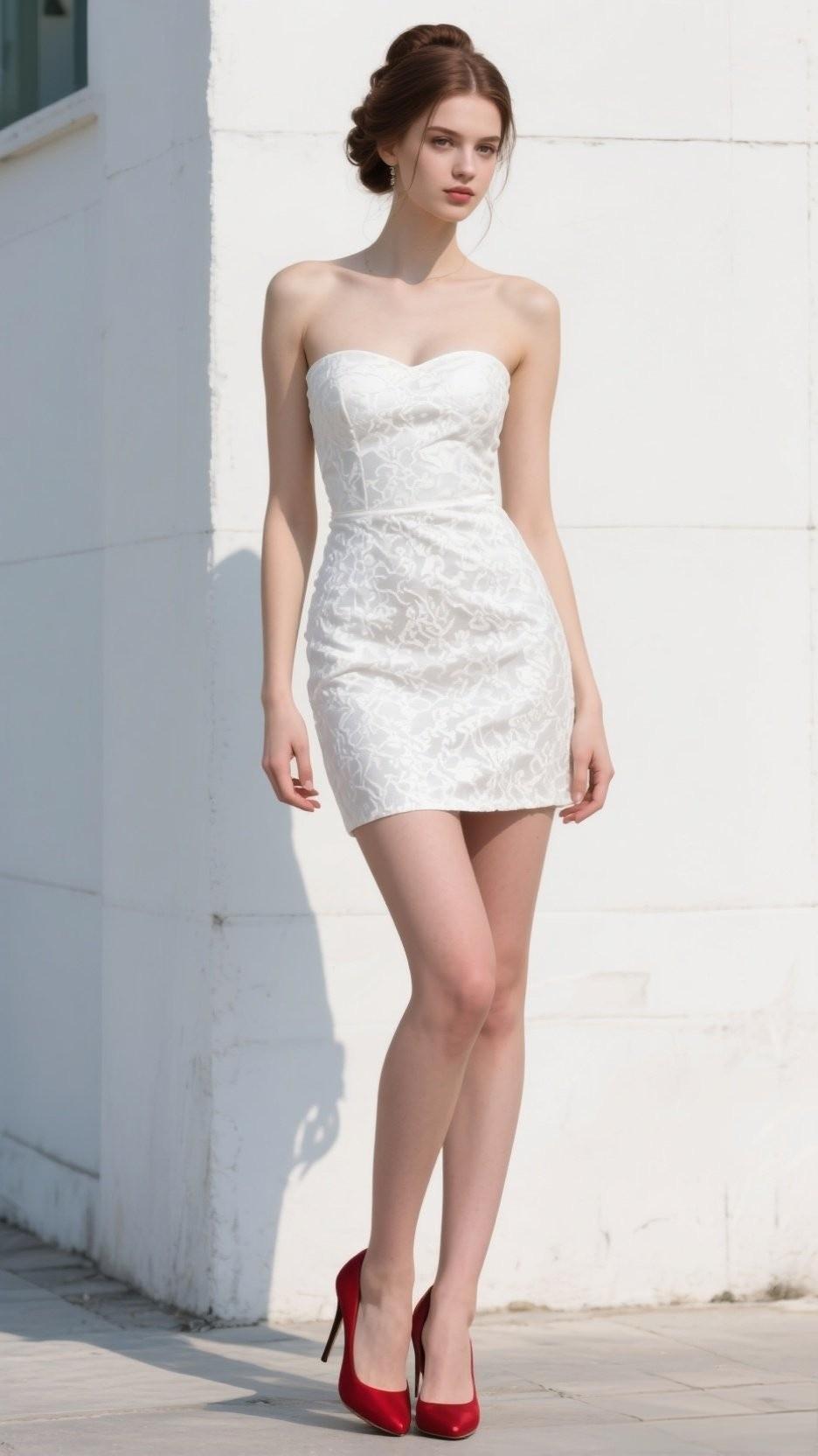 优雅白裙搭配红高跟鞋,都市时尚风范