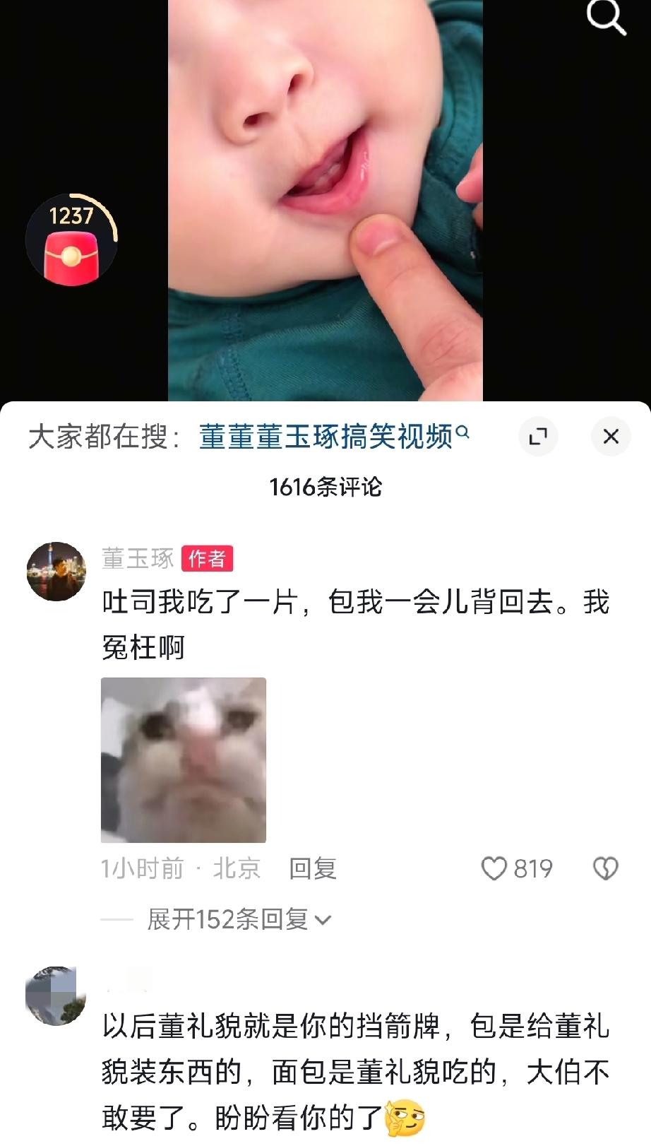 董董今天是怀着忐忑不安的心情走进直播间的。他一进来就说有点不太敢上播,因为昨晚被马史官全网追缉。 果然,一进来评论区都在问:“吐司呢?”汉森也说:“吐司呢?都没分我一片。”董董说他真没带回家去。 董董在晒董礼貌的视频评论区留言:“吐司我只吃了一片,包一会背回去。我冤枉啊!” 很多网友留言帮董董出招。有网友留言说:董礼貌就是你的挡箭牌,包是给董礼貌装东西用的,吐司是董礼貌吃的,他大伯不敢要。” 这确实是个好办法,这时大家又担心盼盼怎么办?盼盼能拿谁当挡箭牌呢?我想盼盼可以说她把吐司带回去是给她妈妈吃的,因为她妈妈很喜欢吃。董宇辉是最喜欢孝顺的人的,听这么一说一定还会表扬盼盼是个孝顺的好孩子呢。 董董说等会下播,他还要去拍吐司的视频,这回有盐味的了,这回我他不吃了,都留着给大家。 吐司以后会经常有的,而且口味会越来越好,品种也会越来越齐全。 董宇辉 与辉同行