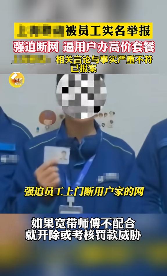“严查到底!”1月7日,上海,三名男子手拿身份证,实名举报当地运营商为了创造营收,强迫员工上门断用户的网络,再用报修的理由逼用户办理高价增值套餐,如果员工不配合,就用开除或者罚款威胁!而运营商得知后立马报警,坚决称是诬陷! 镜头前的三名男子全程态度坚定,每个人都手持身份证亮明身份,胸前挂着的工作证、身上印着清晰运营商标识的蓝色工装,每一个细节都在强化这场举报的严肃性,也让围观者瞬间感受到了事件的重量。 其中一位男子对着镜头,把所谓的“操作流程”说得明明白白。他提到公司内部会专门把每月消费50元左右的用户划定为“低端人群”,这类用户的正常网络,竟然成了员工完成考核的“突破口”。 按照要求,员工要主动上门,用技术手段悄悄断开用户的网络连接,全程不能提前跟用户透漏半点消息。 等用户发现网络中断,急着打电话报修时,上门处理的员工就必须抓住这个关键时机,强行向用户推销价格更高的增值业务,只有用户办理成功,员工才算完成一项考核指标。 这样听起来匪夷所思的操作,背后藏着的是运营商行业普遍存在的业绩压力。有行业内部人士透露,现在通信市场早就趋于饱和,用户增长陷入了瓶颈。 但运营商的营收增长KPI却丝毫没有放松,这种“增长天花板”与“指标大山”之间的矛盾,最终往往都会层层传导到基层员工身上。 过去靠拉新用户就能轻松完成任务的时代早就过去了,现在很多基层员工只能把全部精力放在存量用户身上,各种营销套路也就应运而生。 其实在此之前,就有不少消费者反映过类似的困扰。有人说经常接到运营商的营销电话,对方打着“免费升级”“限时优惠”的幌子,一个劲诱导办理高价套餐,可等办理完才发现,所谓的优惠根本不存在,甚至还出现了隐性扣费的情况。 而举报视频里提到的“不配合就处罚”,更戳中了不少基层从业者的痛点。有曾在运营商工作过的人现身说法,基层员工的薪资大多和业绩直接挂钩。 底薪少得可怜,提成占比却极高,要是完不成指标,不仅拿不到奖金,还可能面临层层罚款,严重的时候甚至会被末位淘汰。 这种高压的考核机制,让很多基层员工陷入了两难境地:要么违背良心配合公司套路用户,要么坚守底线面临失业风险。 在这样的行业环境下,不少人选择了沉默,而这次三名男子站出来实名举报,无疑打破了这份沉默,也让公众第一次真切关注到运营商基层从业者的生存困境。 举报视频的发酵速度超出想象,但让人意外的是,相关视频很快就被下架,发布视频的账号也无法正常私信联系,这一变化让整个事件蒙上了一层迷雾。 不过还没等网友们梳理完脉络,举报事件发酵不到一天,涉事运营商就通过官方微博发布了正式声明。 声明里明确表示,公司从来没有以任何形式要求家宽装维人员,用强迫客户报修的方式诱导办理业务,强调举报内容与事实严重不符。 同时运营商还透露,已经正式向公安机关报案并获得了受理,会保留依法追究造谣者和恶意传播者法律责任的权利。 除此之外,运营商客服人员在接受媒体采访时也再次重申,不存在视频中举报的现象,只是因为举报视频下架得太快,暂时无法核实这三名男子是否真的是公司员工。 随着双方先后发声,网友们的讨论也分成了鲜明的两派。一部分网友觉得,三名男子敢实名举报,还主动亮出身份信息,大概率不是凭空捏造,毕竟诬告要承担的法律责任谁都清楚,没人会拿自己的前途开玩笑。 另一部分网友则认为,运营商作为大型企业,不太可能做出这么极端的事情,不排除有人借举报博眼球,甚至是出于个人恩怨进行报复。 还有不少消费者表示,不管举报内容真假,都希望相关部门能彻底调查,不仅要查清这次的举报是否属实,更要借机整顿一下运营商行业混乱的营销套路。 值得注意的是,监管部门对通信行业的规范一直没有放松。上海市通信管理局此前就开展过“浦江护航”等专项行动,针对电信和互联网行业的数据安全、智能机器人骚扰营销、虚拟运营商实名制落实不到位等问题进行过专项整治。 这次的举报事件,无疑也给监管部门提了醒,需要进一步加强对运营商基层营销行为的监督,避免类似的争议再次发生。 目前,公安机关已经受理了运营商的报案,后续调查还需要一定时间。到底是运营商存在违规操作被员工揭发,还是有人恶意诬告损害企业声誉,只能等待官方调查结果给出最终答案。 但无论结果如何,这场事件都已经让公众清晰地看到了运营商行业业绩压力与合规经营之间的矛盾,也让更多人关注到消费者在通信服务中可能遇到的权益侵害问题。 对企业而言,与其在舆论漩涡中辟谣报警,不如把精力放在提升服务质量上;对行业而言,与其纠结个别事件的真伪,不如借此机会自查自纠,解决长期存在的乱象。 信任就像一张纸,皱了就再也抚不平。希望这场风波能成为通讯行业的一次觉醒,让消费者不再受委屈,让服务回归本质。 信源:澎湃新闻