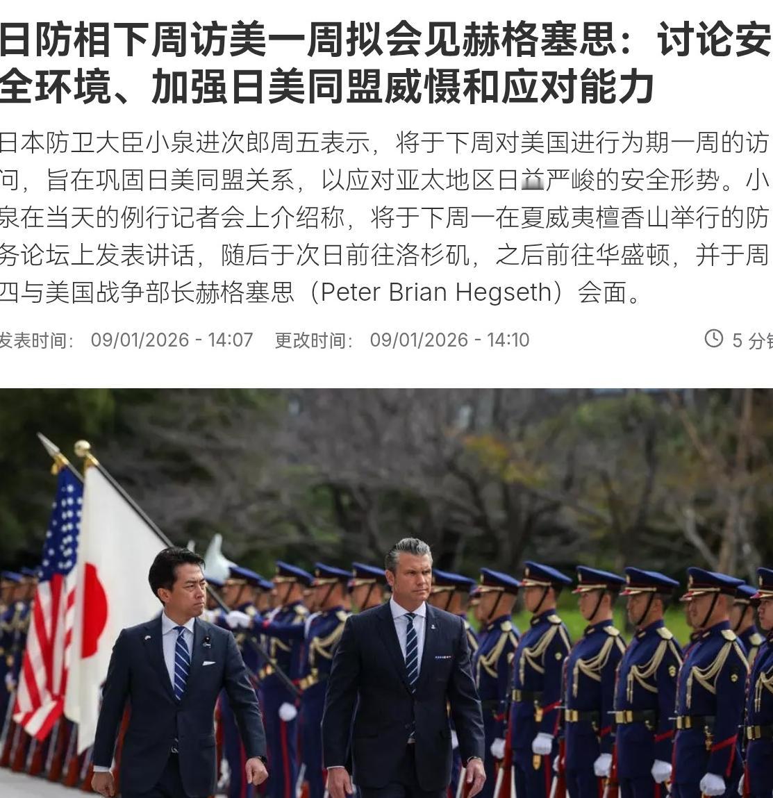 太尴尬了!日本防卫大臣小泉进次郎即将访美,但有一个尴尬的问题,摆在日本面前,不容日本躲闪!1月9日,根据外媒报道,日本防卫大臣小泉进次郎表示,他本人将于下周对美国进行为期一周的访问。 既要见美国国防部长赫格塞思,还要去夏威夷对接美军印太司令部,满心满眼都是要强化日美同盟的架势。可谁也没想到,刚把行程说完,就被现场记者的一个问题问得下不来台,场面尴尬到能抠出三室一厅。 记者直截了当地问:要是美方敦促日本公开支持美国近期在委内瑞拉的行动,日方打算怎么应对?这个问题就像一把尖刀,直接戳中了日本的痛处,想躲都躲不开。 小泉当时也只能含糊其辞,说“会谈之前难以作答”,嘴上还硬撑着要为委内瑞拉的稳定做外交努力,可那股子不自在劲儿,明眼人都能看出来。 其实这尴尬早有伏笔,不是记者突然发难。毕竟美国在委内瑞拉干的事儿,实在太不地道了。 1月3号凌晨,美军直接对委内瑞拉发动军事打击,冲进首都加拉加斯把总统马杜罗夫妇强行抓到美国,还放话要“管理”委内瑞拉,甚至拉着石油企业高管开会,打算把委内瑞拉的石油资源分了,这事儿在国际上已经骂声一片。 联合国安理会开紧急会议,好多国家都谴责美国违反国际法,说这是“强权即公理”的霸道行径,连美国自己的学者都吐槽,这次连“民主”的外衣都懒得披了,纯粹是老派的炮舰外交。 按理说,日本作为美国在亚太最铁的盟友,这会儿本该站出来站台,可它偏偏不敢。为啥?因为这事儿实在太敏感,站哪边都讨不到好。要是公开支持美国,先不说会跟着美国一起被国际社会骂,还得打自己的脸。 毕竟日本平时总把“反对以武力改变现状”“维护国际法”挂在嘴边,现在美国干的事儿,正好撞在它的表态上,这一支持,不就成了实打实的双标吗? 日本网民早就看穿了这点,之前首相高市早苗和内阁官房长官回避问题时,就有网友骂政府对美国唯唯诺诺,说那些所谓的立场都是托辞。 可要是不支持,日本又怕得罪美国。要知道小泉这次访美,本来就是去求援的。自从高市早苗上台后,中日关系恶化,中方加强了两用物项对日出口管制,直接影响了日本的武器生产和出口。日本还想提前完成增加防卫费的目标,修订国家安全战略,这些都得靠美国点头支持,甚至在国际舆论上帮着说话。 美国新的国家安全战略明确了“西半球优先”,之前为了施压委内瑞拉,连驻日美军冲绳基地的直升机都调走了,日本学者都担心美国会减少对东半球的关注,这对靠美国安保伞的日本来说,可不是小事儿。 日本想抱美国大腿,可美国压根没把它当回事。有人特意去查了美国防长赫格塞思的官方社交账号,搜“日本”“日方”全是空白,反观小泉这边,早就发了一堆和赫格塞思握手、强调日美同盟重要性的帖子,两边的热络程度根本不对等,活像日本在单方面热脸贴冷屁股。 现在小泉带着这个无解的尴尬去访美,大概率还是会继续装糊涂。毕竟在日本看来,得罪国际社会事小,失去美国的支持事大。可这种左右逢源的心思,早就被看得明明白白。 说白了,日本的尴尬,根源就是自己把外交主动权全交到了美国手里,成了只能跟着走的附庸。这次访美能不能求到援不好说,但这波尴尬,估计会成为国际外交场上的笑柄,久久散不去。