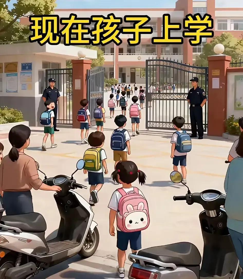 40年上学放学对比。以前的学生有安全感,可以自由上学和放学;现在的学生要警察守着学校门口。