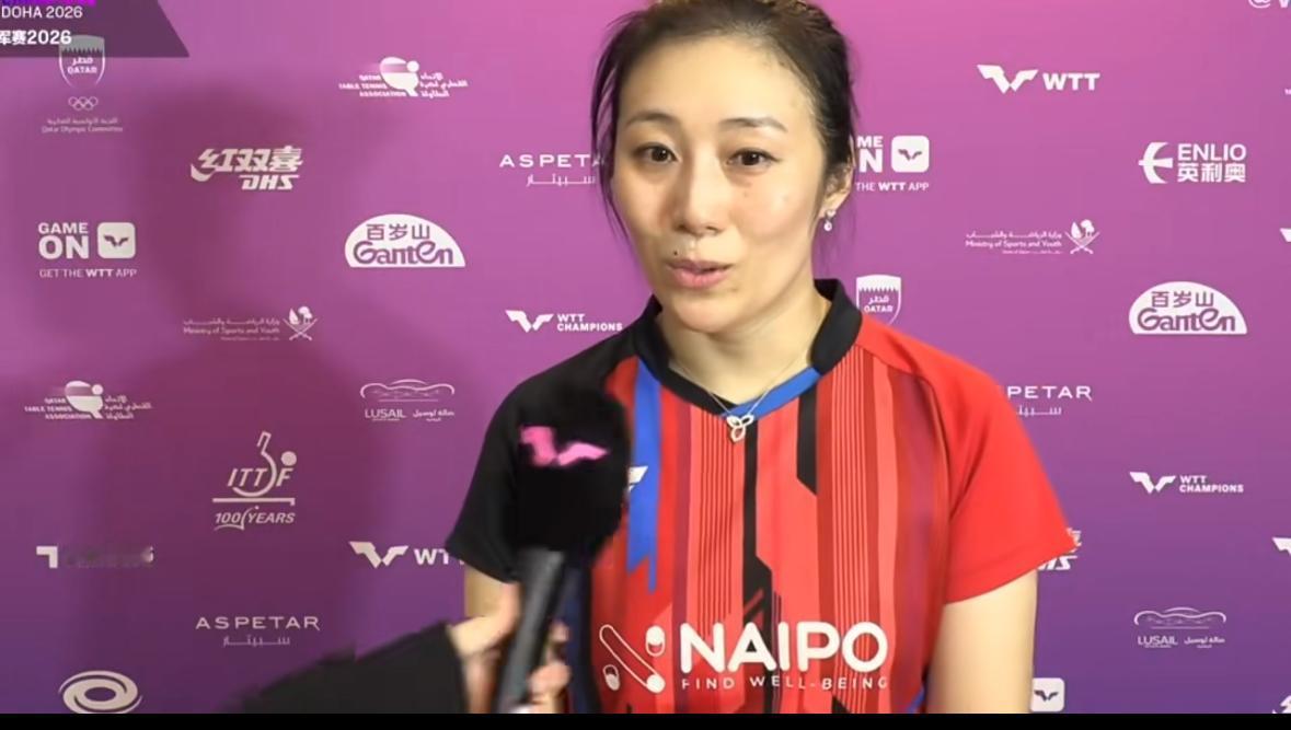 韩莹4:3王曼昱赛后激动接受采访:对自己非常满意👍…… 1月10日多哈冠军赛, 韩莹4:3王曼昱,进半决赛, 韩莹在采访中表示: “之前和王曼昱的比赛没有赢过, 最多赢一局, 本来今天定的目标是赢两局, 赢三局的时候, 我觉得会有一点点希望, 最后尽力去拼每一分, 今天自己没有抱着侥幸心理, 有机会一定去进攻, 给对手造成扰乱, 进入半决赛, 还没有想这个问题, 首先要把心情平稳下来, 再想后面的比赛!” 韩莹半决赛对战朱雨玲, 曼昱给朱雨玲创造出来好条件, 韩莹的体力和精力都被曼昱 消耗差不多了, 半决赛朱雨玲打韩莹, 省力的多了! 曼昱辛苦了, 比赛有输有赢, 总结经验再出发!