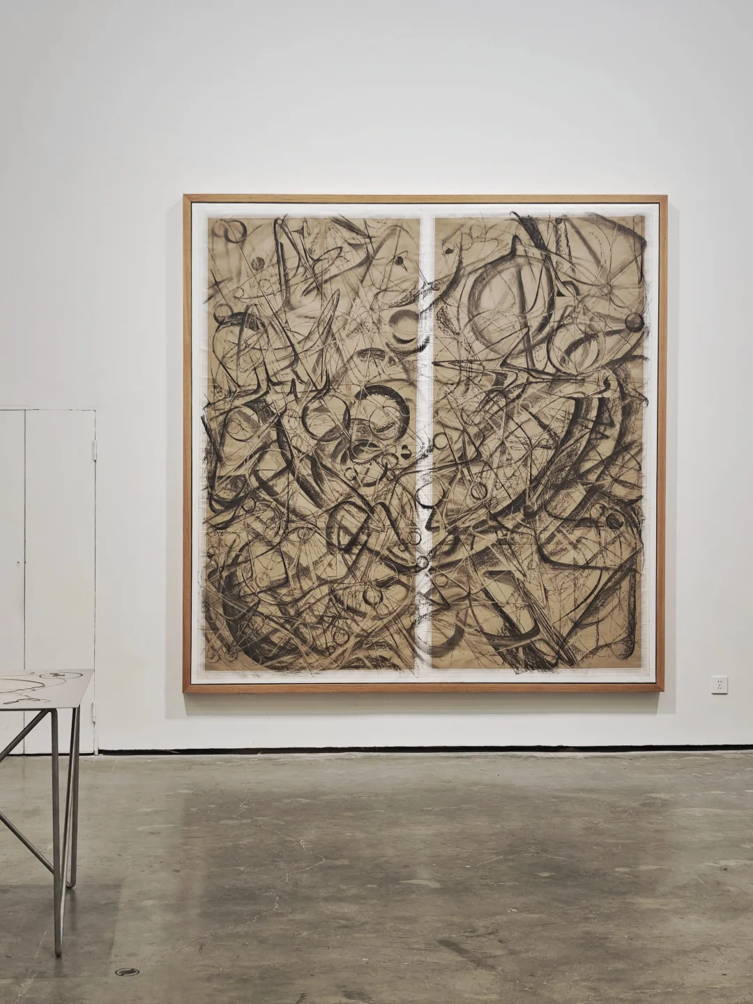 源于感官联觉体验,以钻石与木炭“元素相同却价值天差”的悖论为线索,将社会矛盾与能量转化为密集炭笔线条,探讨“抽象即存在”,叩问全球化时代的价值困惑。