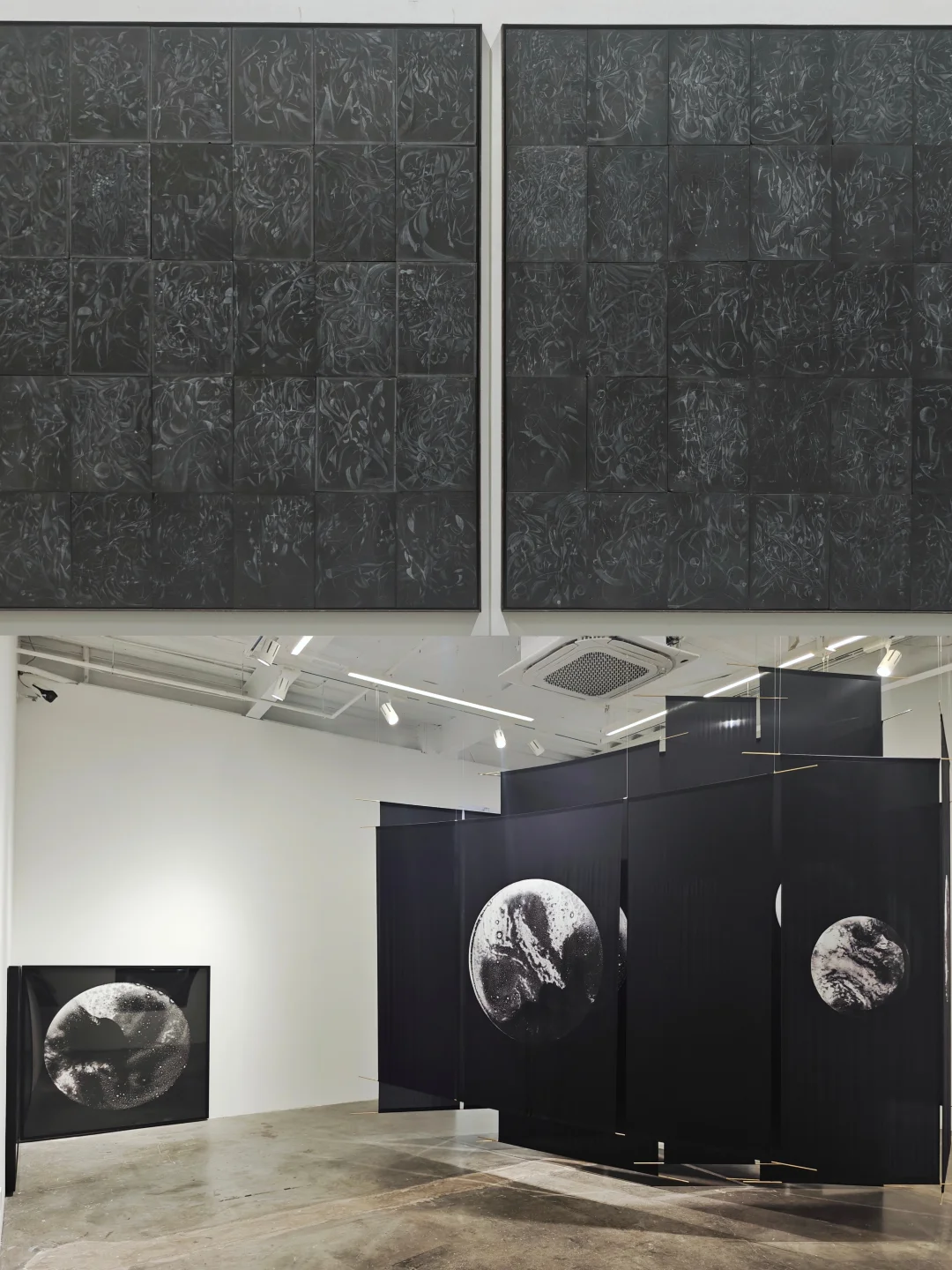 艺术家2014年始于手机捕捉浴盆泡沫的“星空效果”,展览中结合七月星座(显微镜座、望远镜座)拓展为悬挂式装置,通过微观泡沫与宏观星空的“感知错位”,连接瞬间与永恒。