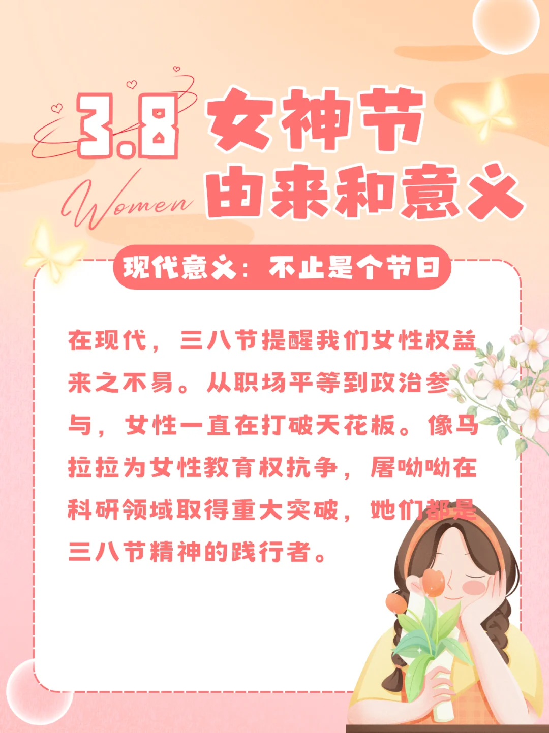 让我们记住三八节的意义,传承女性的奋斗精神!