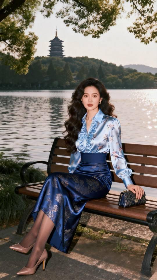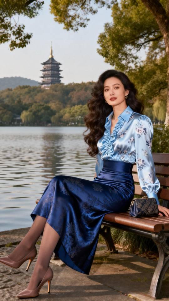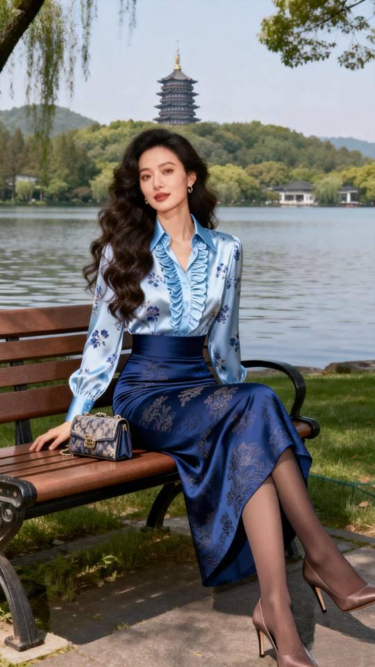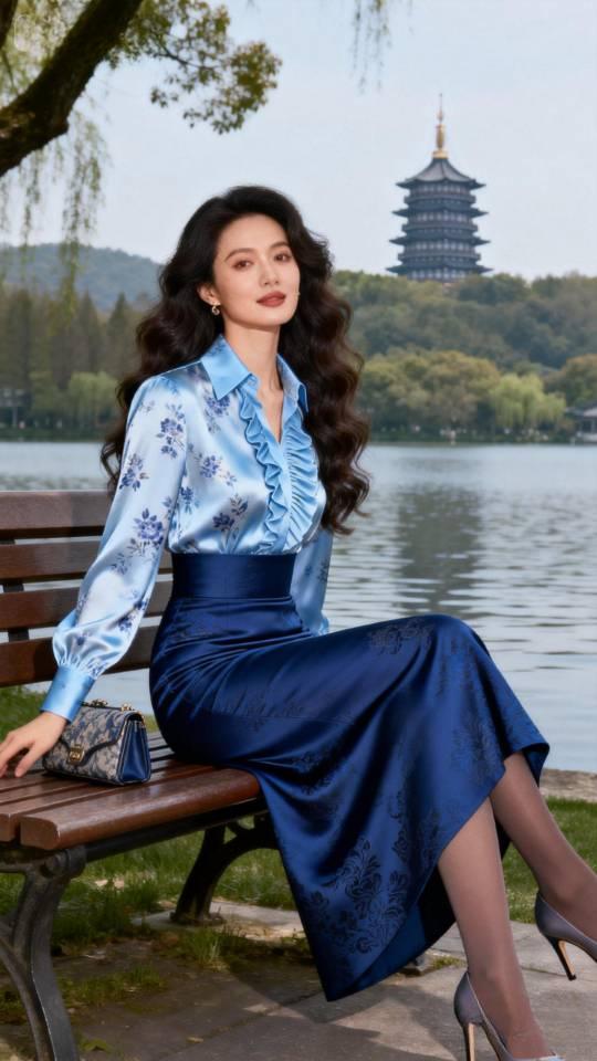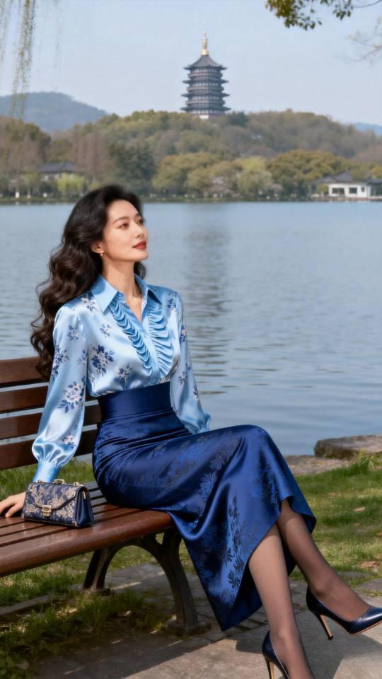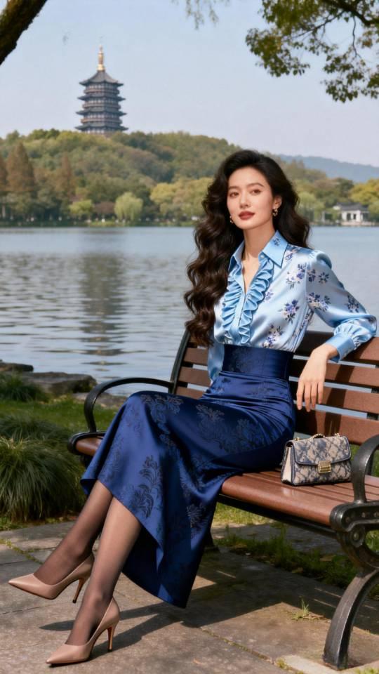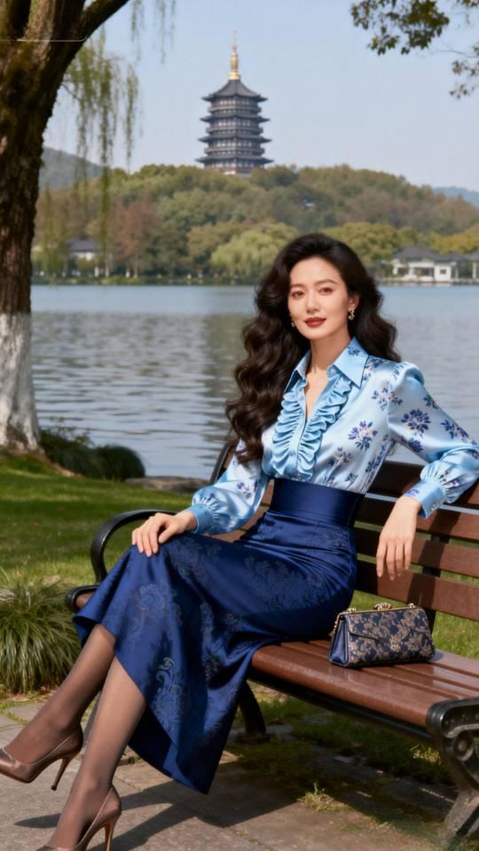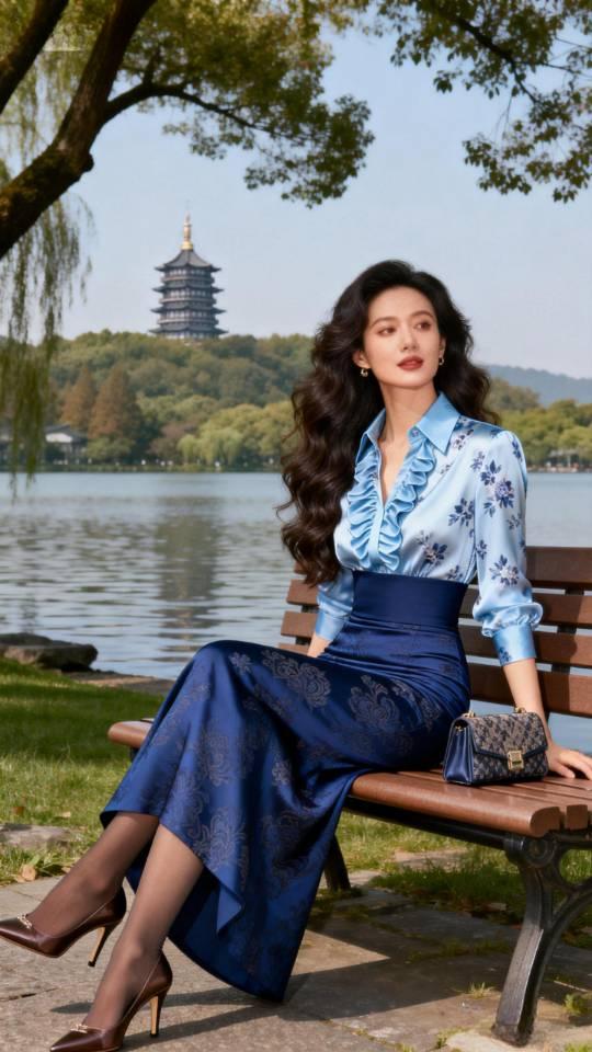 西湖女游客。衣服穿搭 美女壁纸