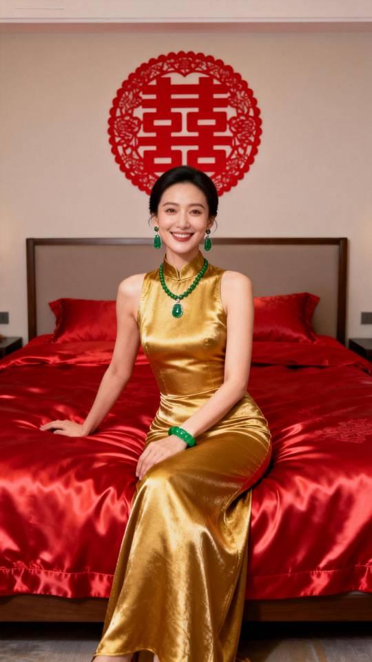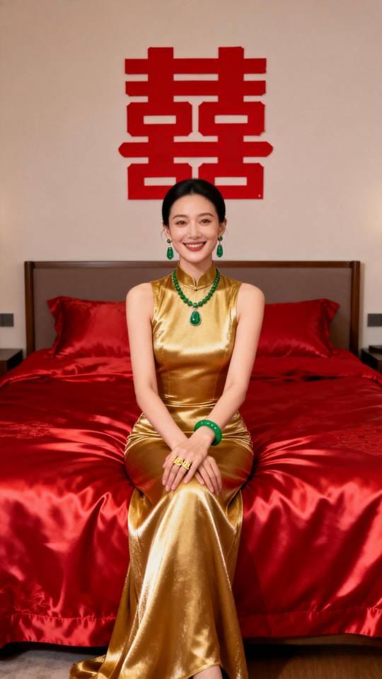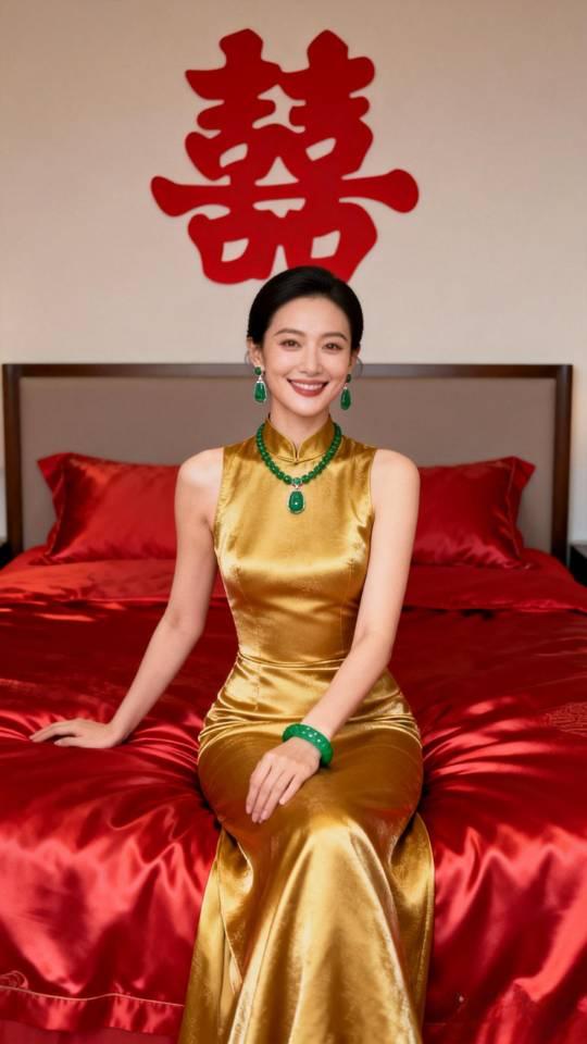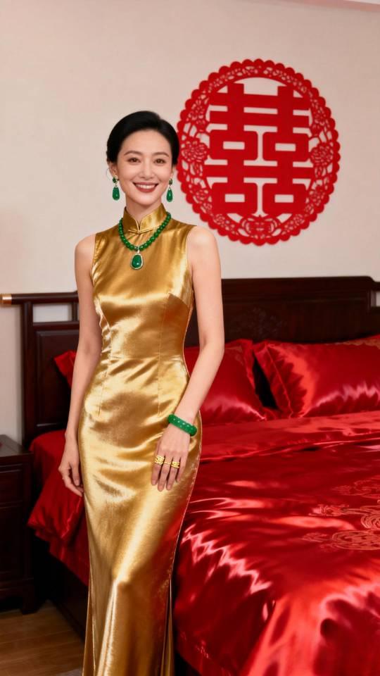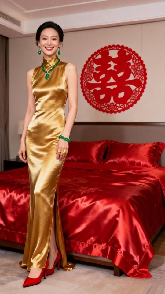 新娘子的金色婚礼服、敬酒服。新娘子 新娘敬酒服礼服
