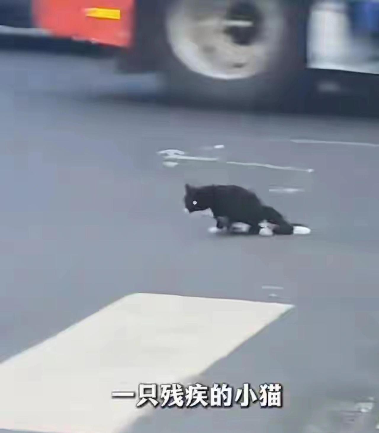 最近有个视频特别暖,在常州街头,一只受伤的小流浪猫,后腿拖着,在车流里很吃力地爬