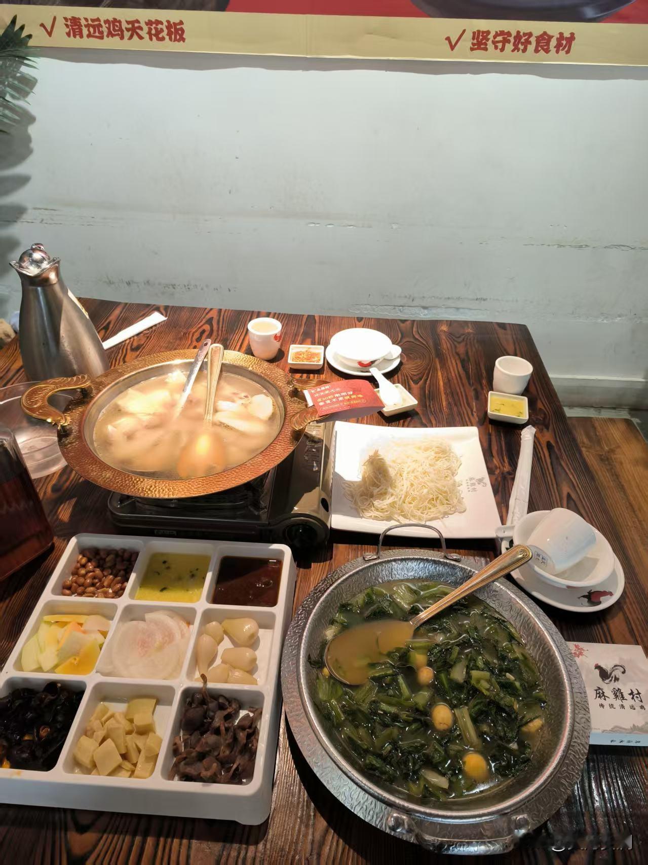 三九第三天奔赴清远,径直闯入“麻鸡村”。早有耳闻清远麻鸡声名远扬,此次定要好好品尝一番。 我点了村长鸡煲、上汤时蔬、九大簋和淮山面。鸡煲一上桌,那醇厚的香气扑鼻而来,汤鲜肉美,鸡肉更是鲜嫩多汁,咬上一口,肉香久久不散,周身都暖融融的。上汤时蔬清爽可口,与鸡煲搭配相得益彰。九大簋菜品多样,每一道都独具风味。还有那淮山面,口感劲道,吸饱了汤汁的滋味。 此次在“麻鸡村”的美食之旅,令人心满意足,清远麻鸡果然名不虚传!