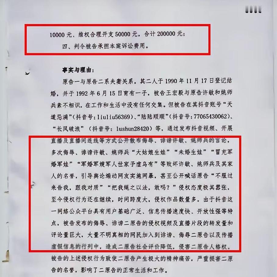 自封是“28指路明灯”的陆陆顺顺王某毅,被许妈和姚爸分别起诉,七日后开庭审理,名誉损失费一人10万,共20万。 不仅侮辱诽谤许敏,姚师兵,甚至公开喊话“不服过来告我,跟我对质”,“把我绳之以法,敢吗?”,侵权态度极其嚣张。 王某毅昨晚又发作品,还在误导网友,说告他是他的“普法宣传”,是听了他的“宣传”才对许姚的网暴。简直是侮辱公众的智商,脸是彻底不要了。 王某毅为了逃脱制裁,不断更改网名,使用过陆陆顺顺,改成了长风破浪,又改成天道忌满,以为就能不被发现,真是天真烂漫。 许妈姚爸夫妻合力,新年伊始,又迎来好消息,“六六顺顺”昨天下午两点收到传票,通知他七日后开庭审理。 王某毅标榜自己曾经是法官,但是说话毫无逻辑,还吞吞吐吐,直播时说话都结结巴巴。建议这次出庭请个好律师,在庭审现场尽量少说话,别污染大家的耳朵了。