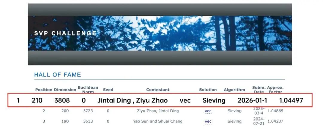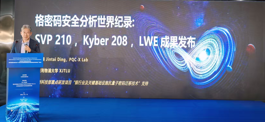 会上,西交利物浦大学后量子迁移交叉实验室教授丁津泰发布,该团队近日在全球知名的抗量子密码学领域挑战赛“最短向量问题挑战赛”中,攻克210维格难题,这刷新了该团队此前保持的全球纪录,为下一步科学、审慎布局全球抗量子密码迁移提供了重要的理论支撑。