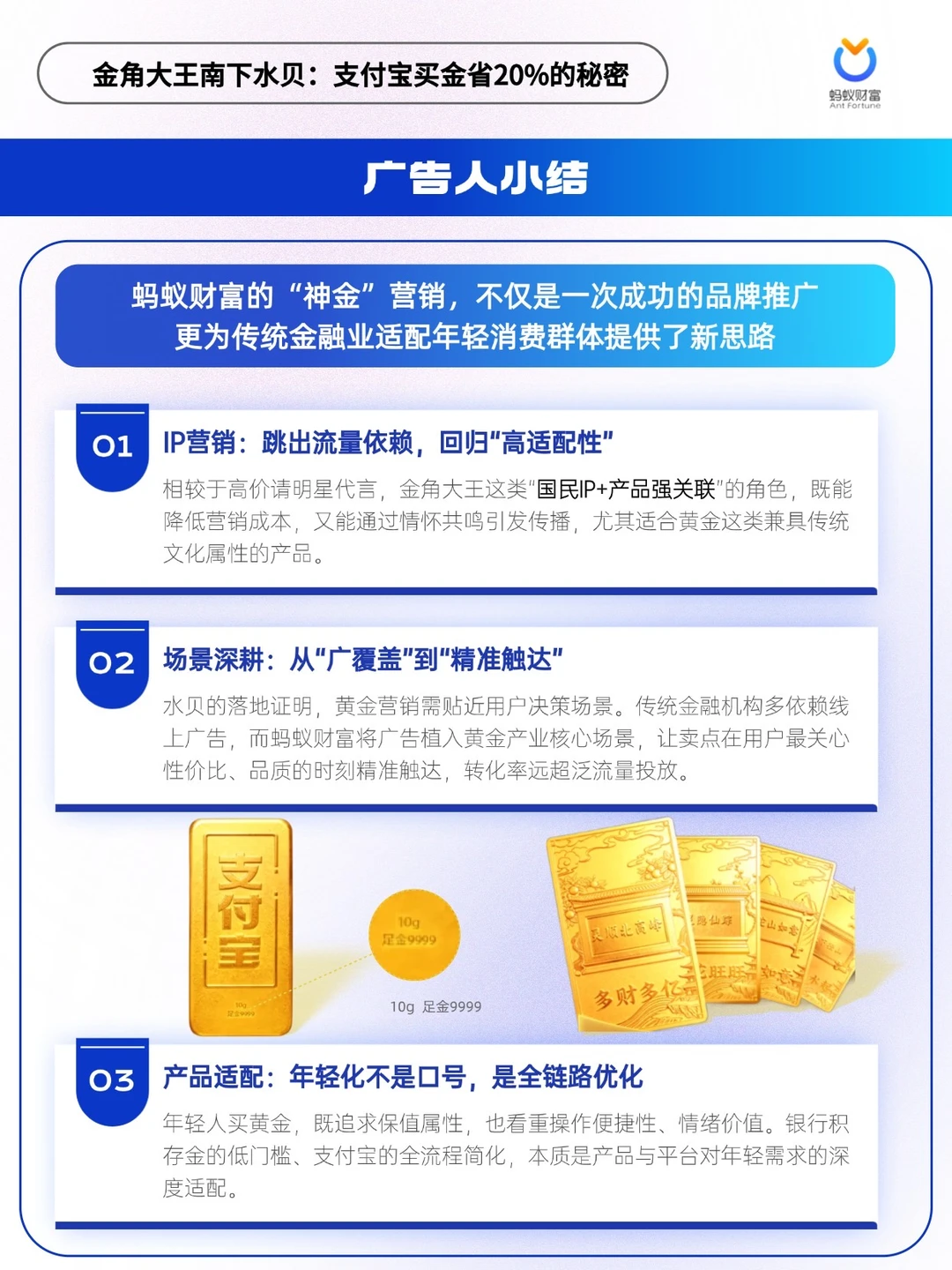 这场营销跳出流量依赖,以 IP 适配、场景深耕、产品优化,为金融业年轻化转型提供范本,也让黄金投资走进更多年轻人视野[鼓掌R][鼓掌R][鼓掌R]