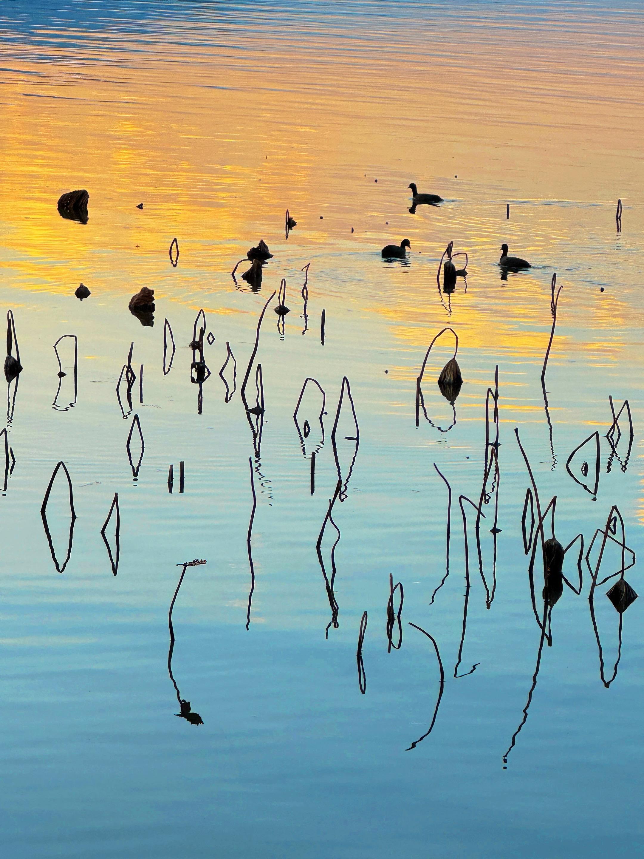 这一刻,吴冠中画里的《残荷》活过来了!! 曾经看见吴冠中先生画的《残荷新柳》,一直以为是纯粹的抽象艺术; 直到我亲眼目睹冬日里的残荷 ,才恍然大悟:原来这是最深刻的写实。 . 前两日我漫步于邛海边,邂逅了这一池残荷;它们立于温柔的夕照里、小鸭悠然游弋于其间,为这静谧的画面添了几分生趣。 . 池塘虽小,却被枯枝巧妙勾勒,残荷褪去繁华,显露出筋骨;像一场盛大的凋零,又像一场待启的新生;原来有些美,不在盛开之时,而在凋零深处。 . 📍拍摄于:四川西昌邛海内 🕐拍摄时间:2026.1.2